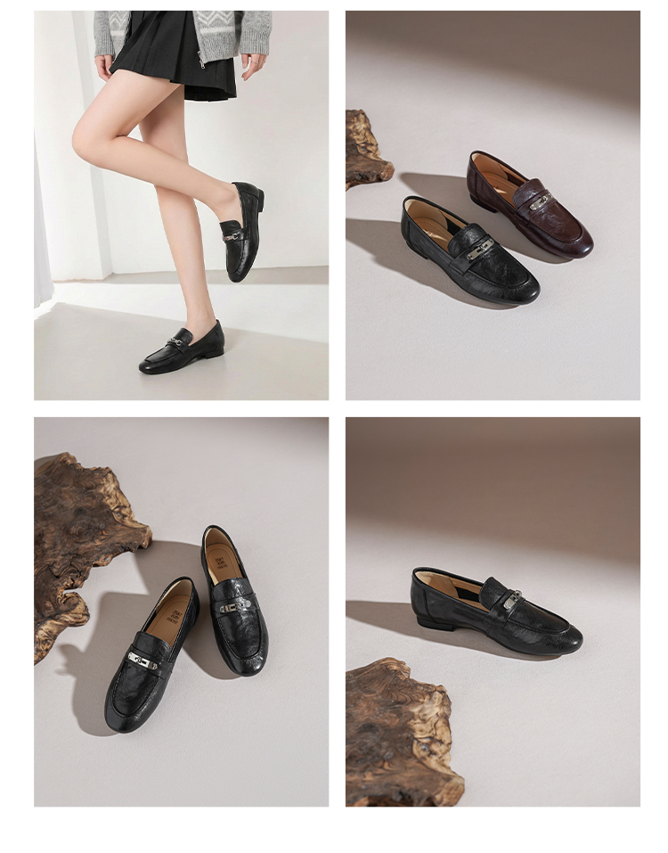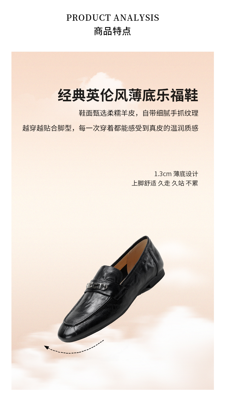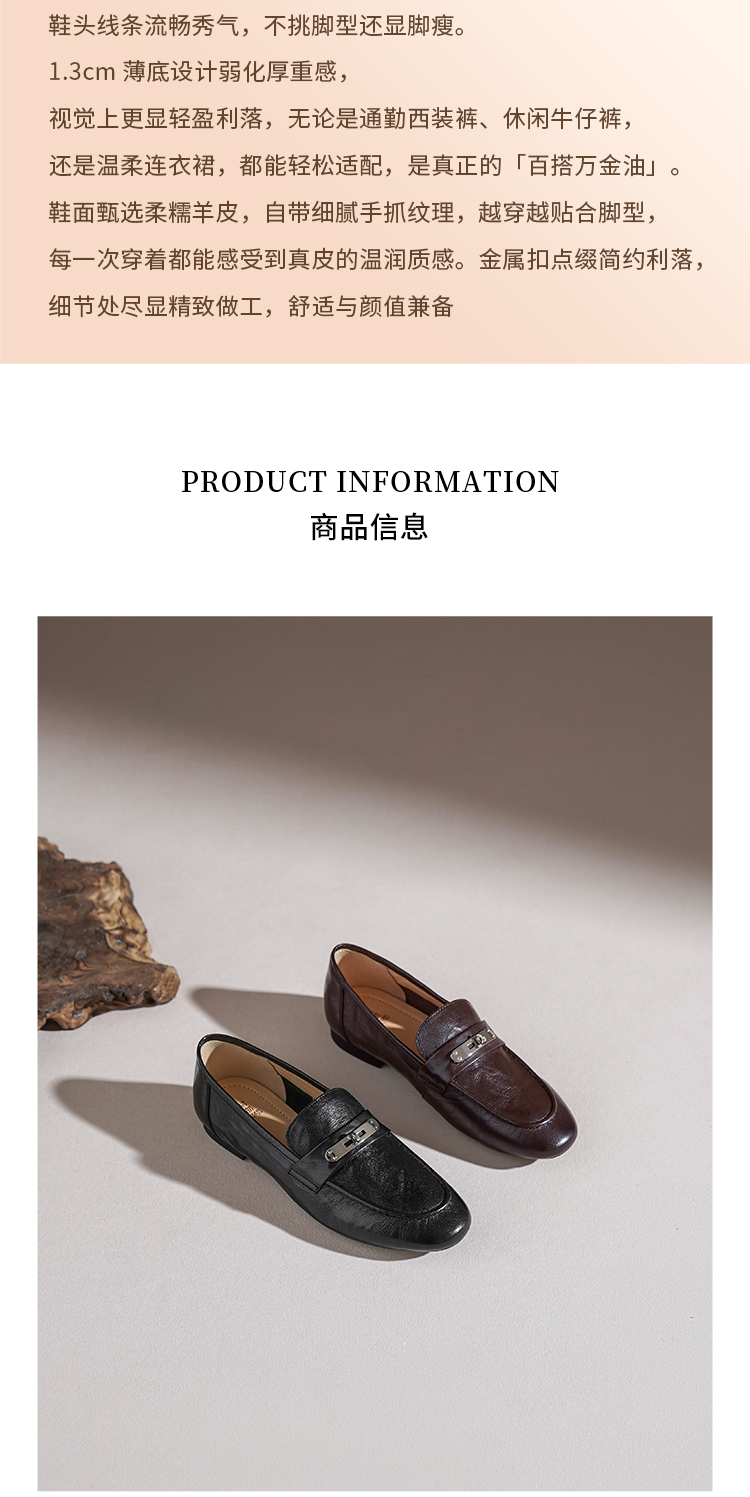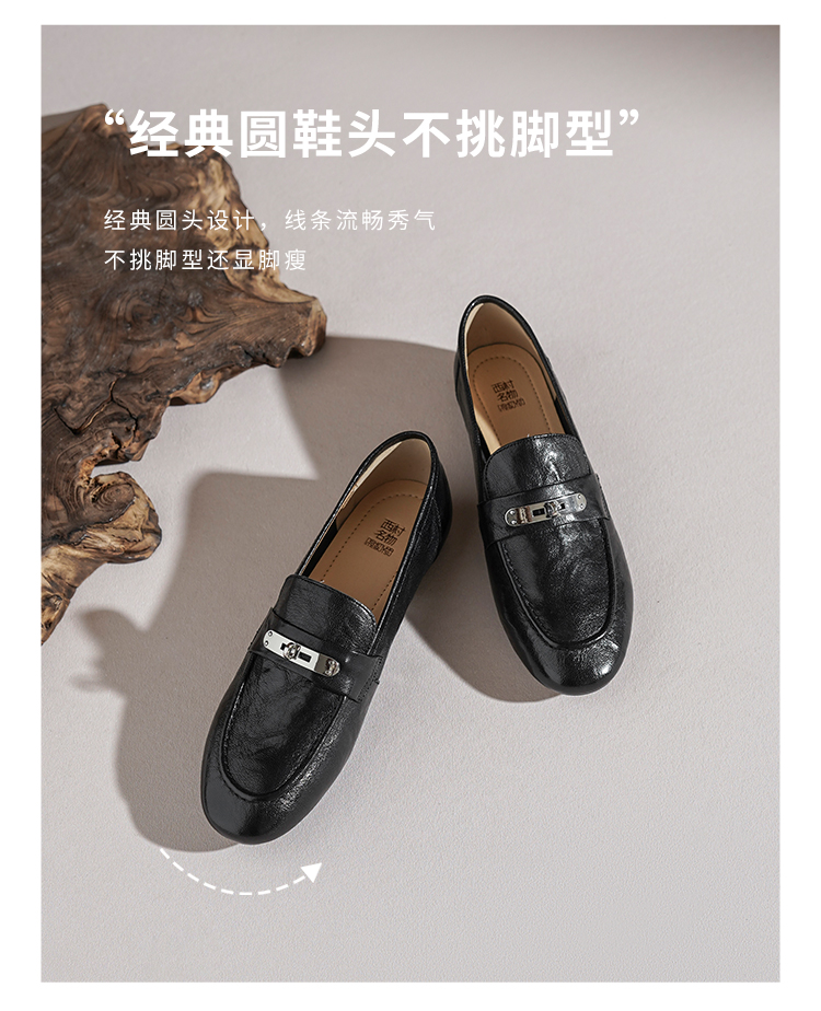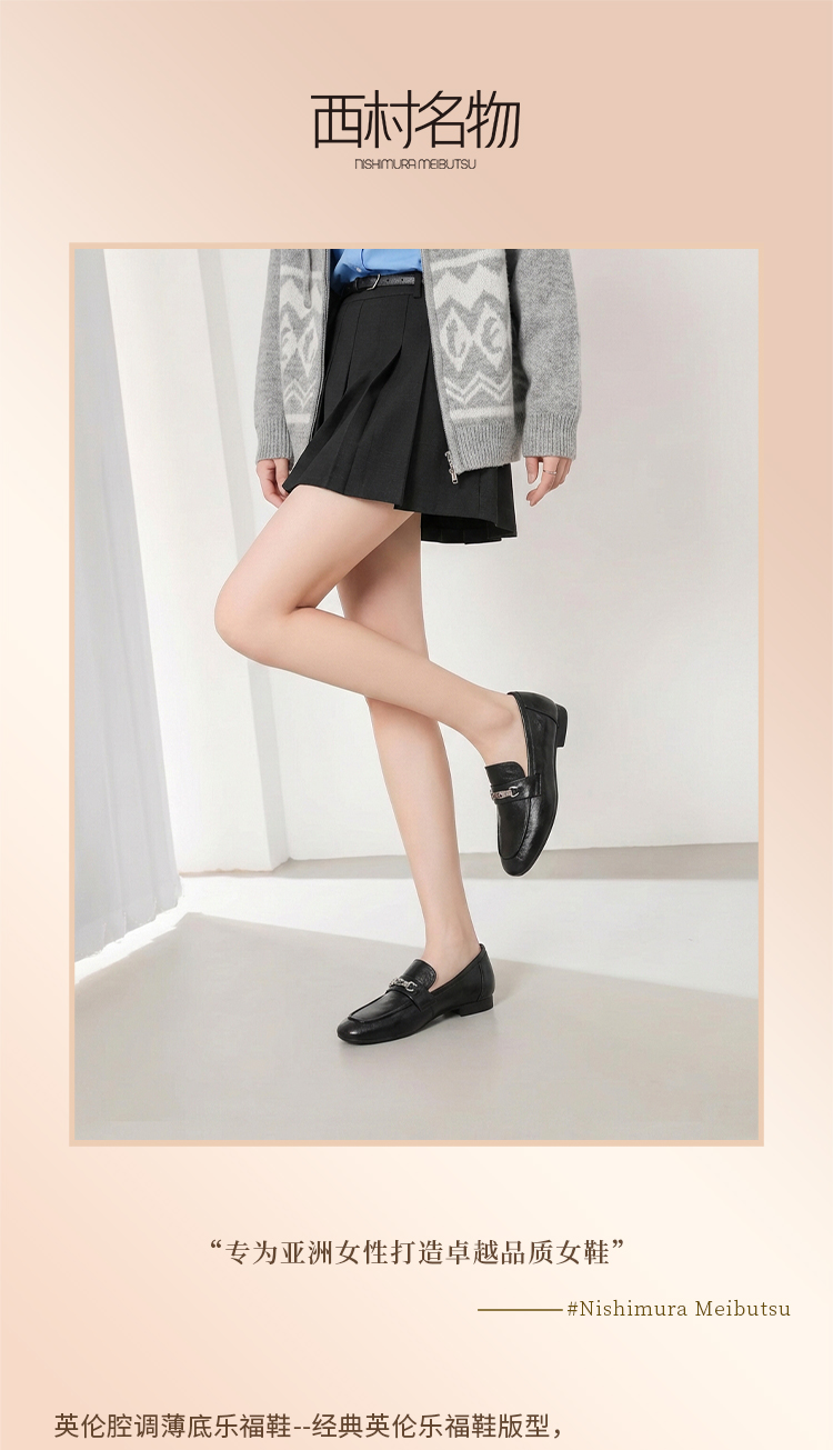 【羊皮革】西村名物2026年春季新款舒适低跟软底软面小方头深口单鞋薄底乐福鞋T26AM18051
