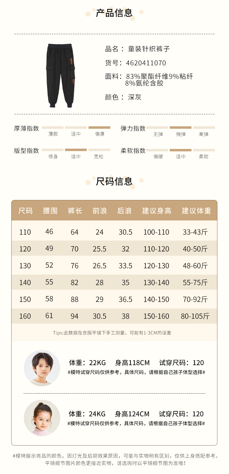 | 货号: 4620411070 | 参考身高: 110/50 120/53 130/53 140/57 150/60 160/63 |