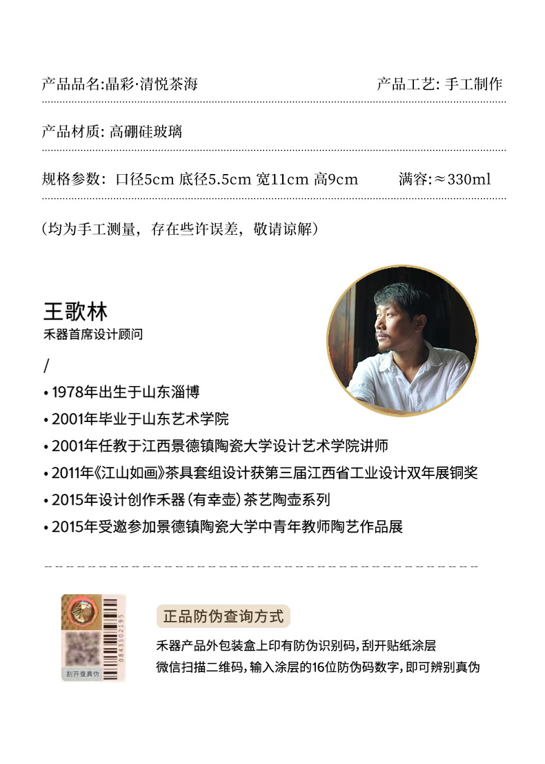 禾器晶彩·清悦茶海 高硼硅 玻璃公道杯 建议容量:300ml