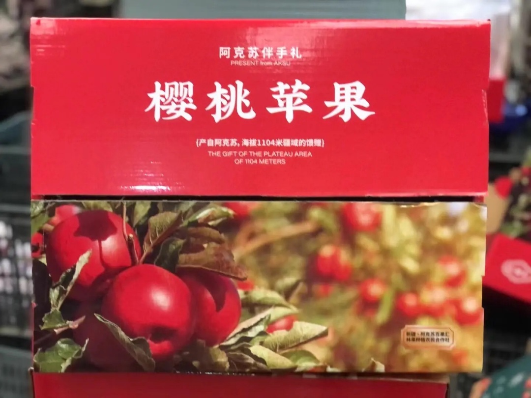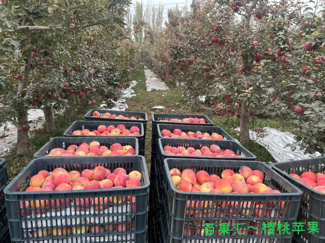 (2)樱桃苹果也是阿克苏苹果,皮厚,脆甜,下树不能直接发货,要果糖转化,至少要存放2个月,个别有糖心,原因是嫁接过程中枝条有的是冰糖,我们主要是和王林苹果授粉。销售周期在过年后,口感比较好,脆甜多汁。