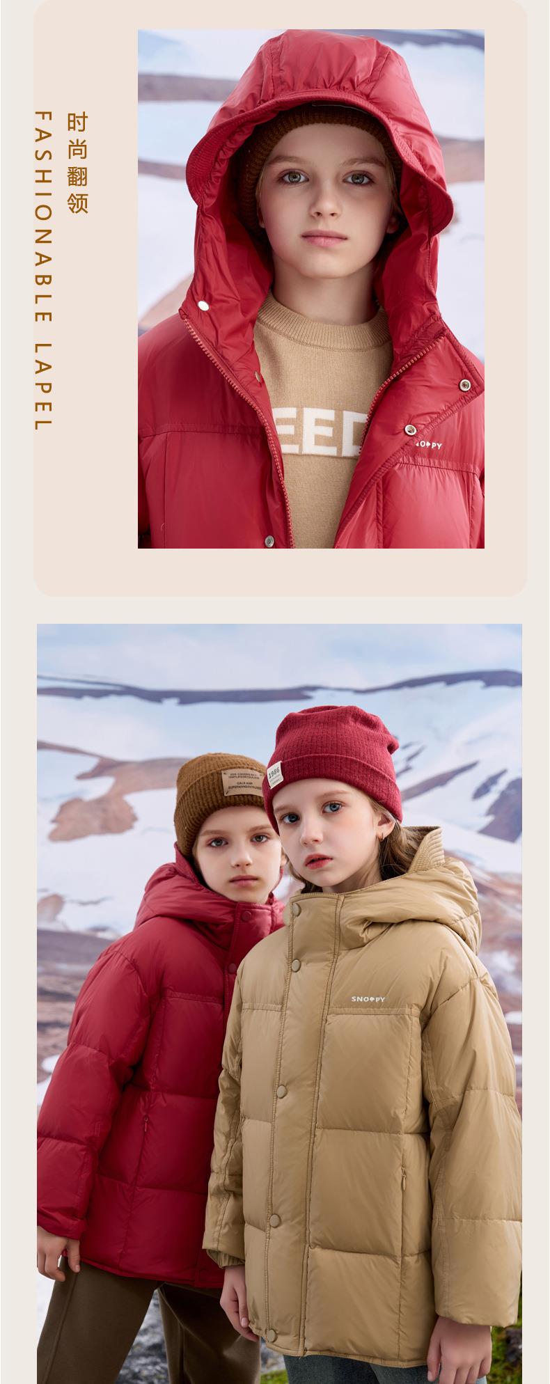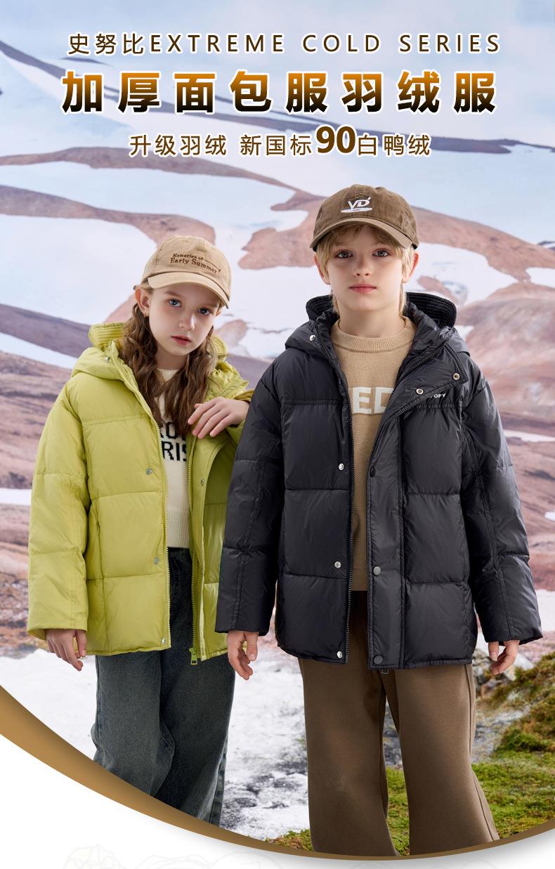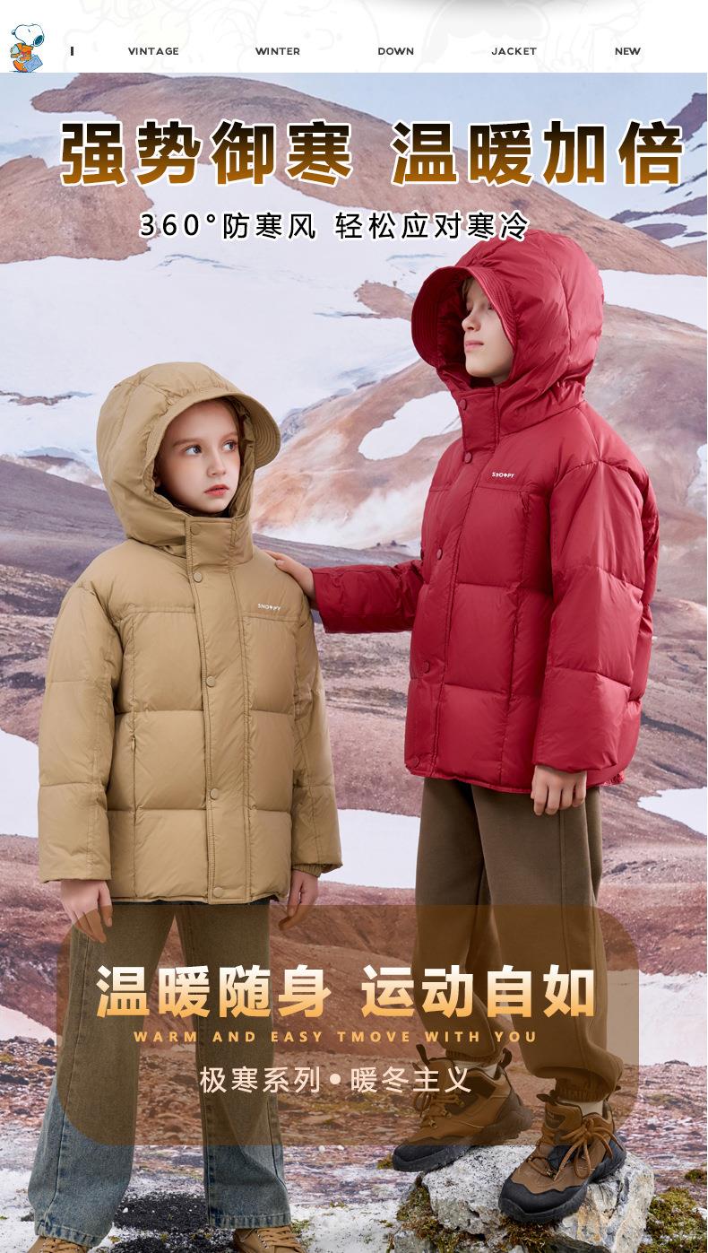史努比儿童羽绒服2024新款90白鸭绒新国标加厚中长款中大童羽绒服