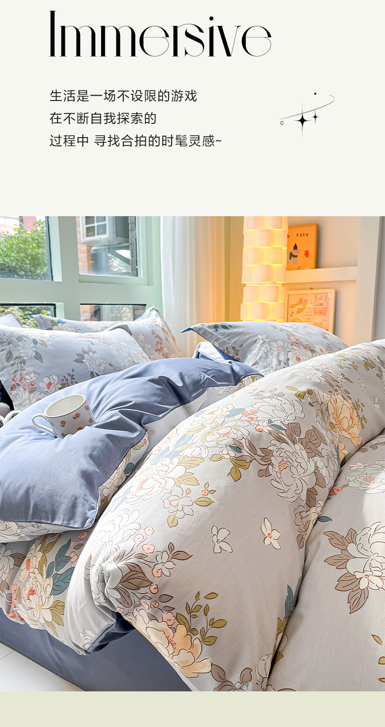 利路米家纺24年春季新款全棉印花四件套牡丹花开