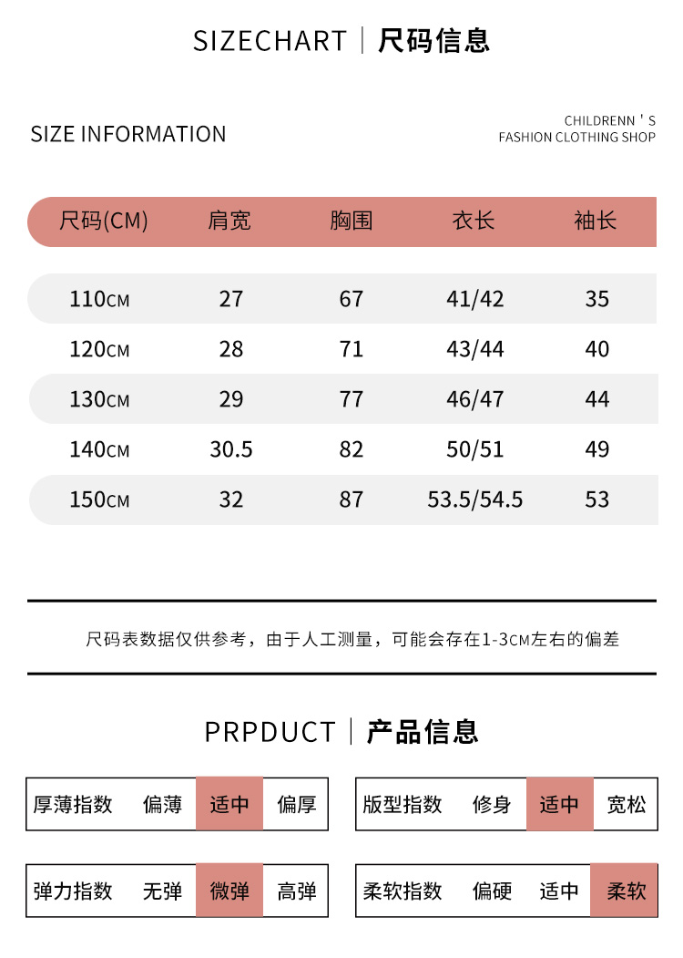 | 参考身高: 110/52 120/56 130/60 140/64 150/68 | 适用季节: 春秋 |