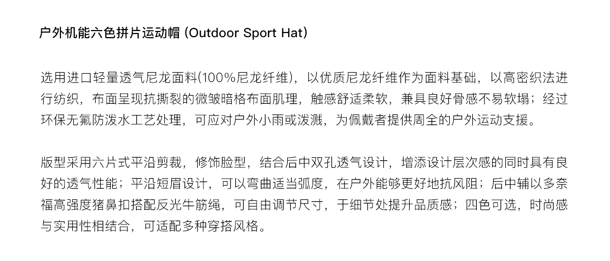 Evistub/E-5XPS665/户外透气速干六片帽