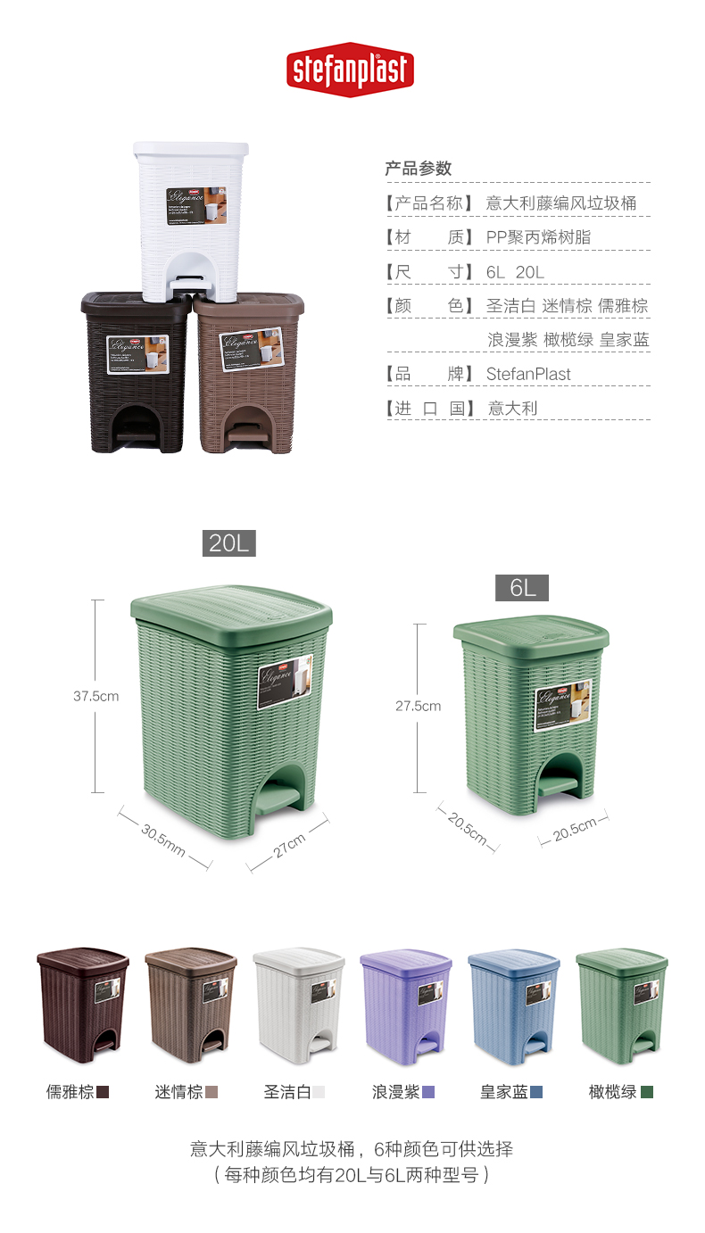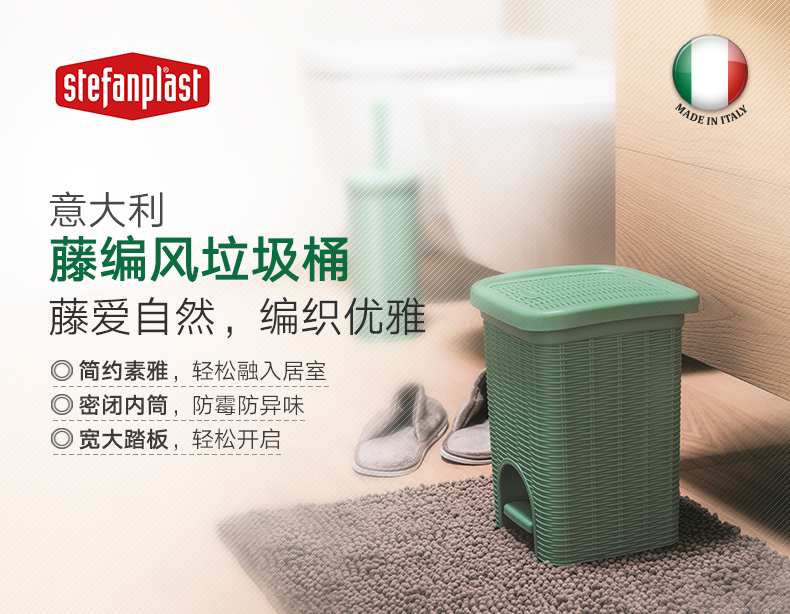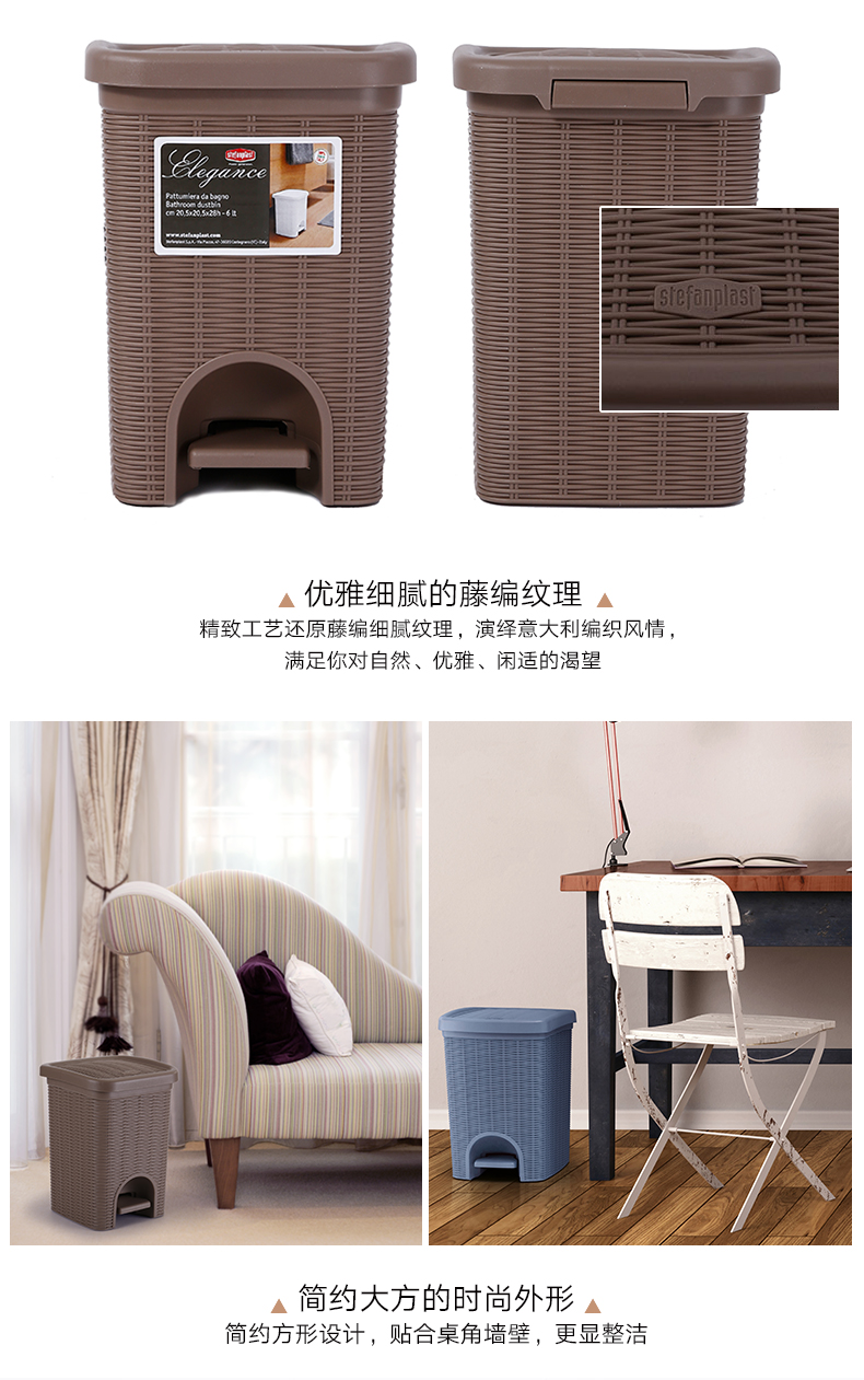 利快StefanPlast意大利进口仿滕编踏板式垃圾桶垃圾筒弃物筒纸篓