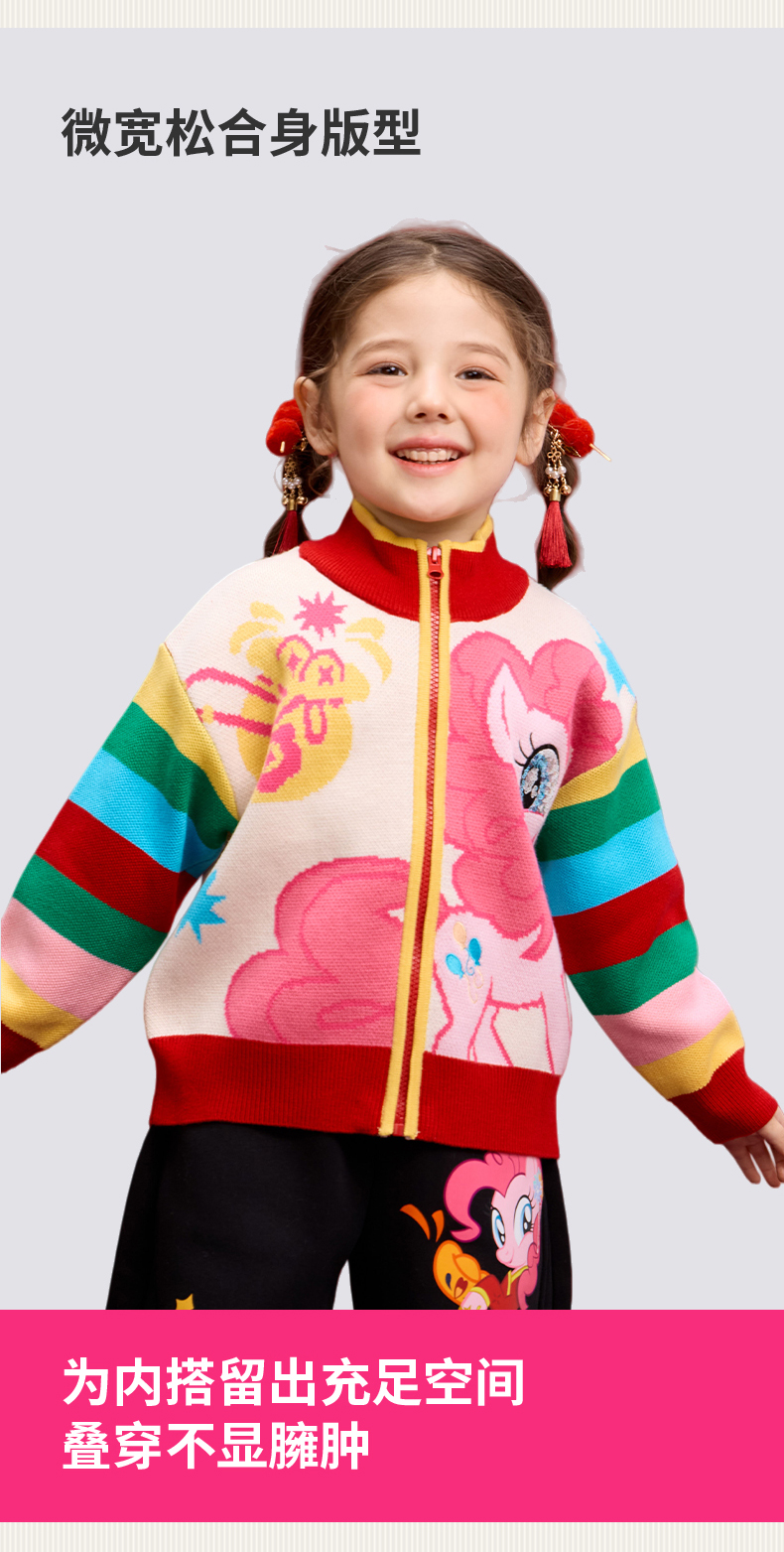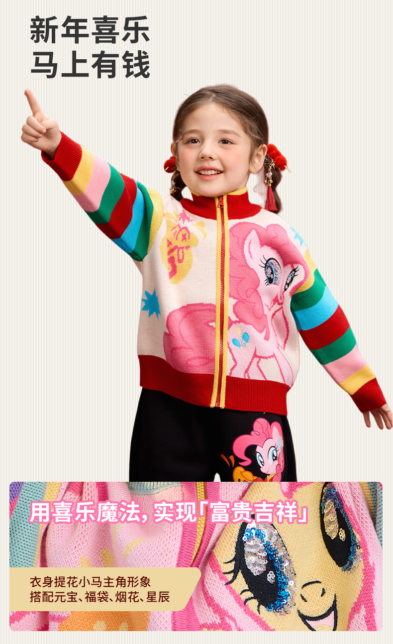 【云优选】小马宝莉联名年衣童装针织外套女童冬季新款小马宝莉新年针织外套