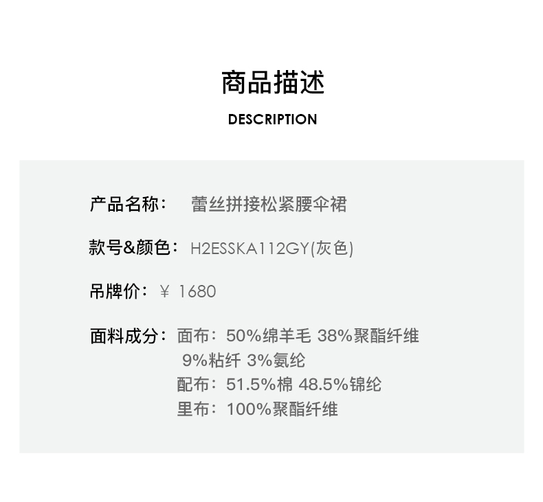 H2ESSKB083GY蝴蝶结装饰不规则百褶长裙