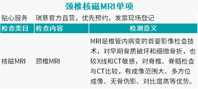 【需和套餐搭配使用】瑞慈体检 颈椎核磁MRI单项检查