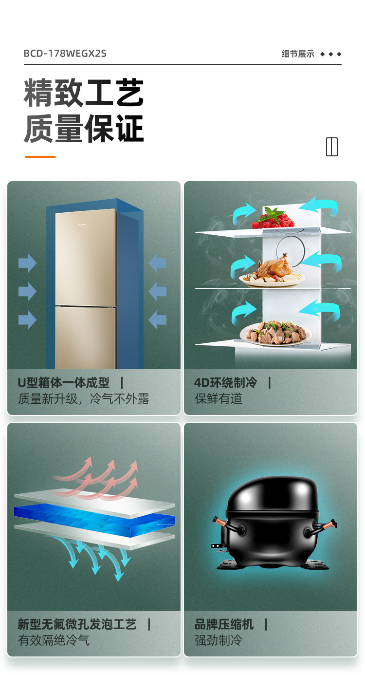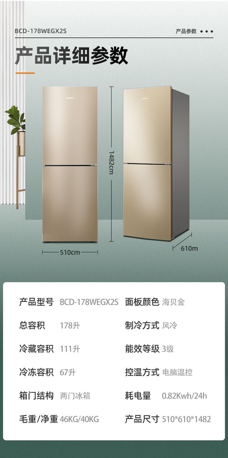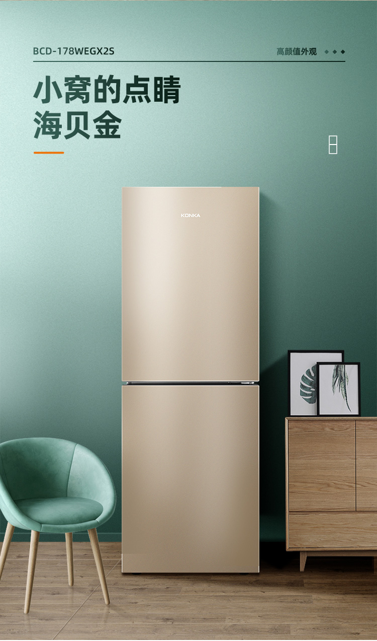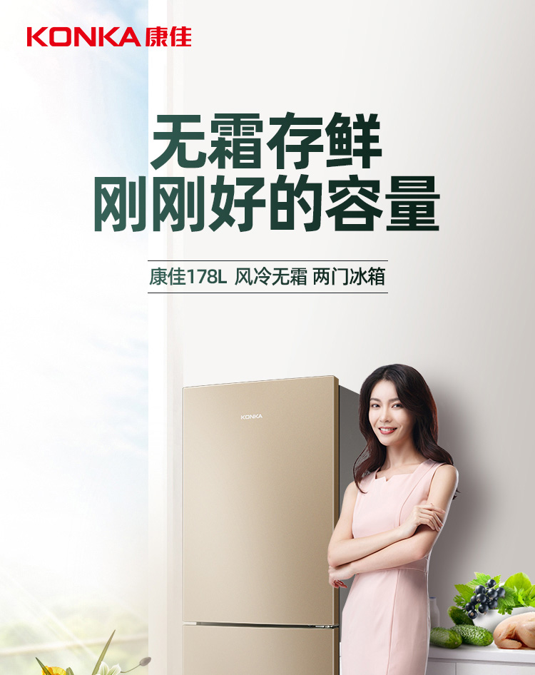 康佳180升风冷无霜双门冰箱小型家用电冰箱二门两门 节能省电低音超薄 迷你宿舍租房BCD-180WD2EGX