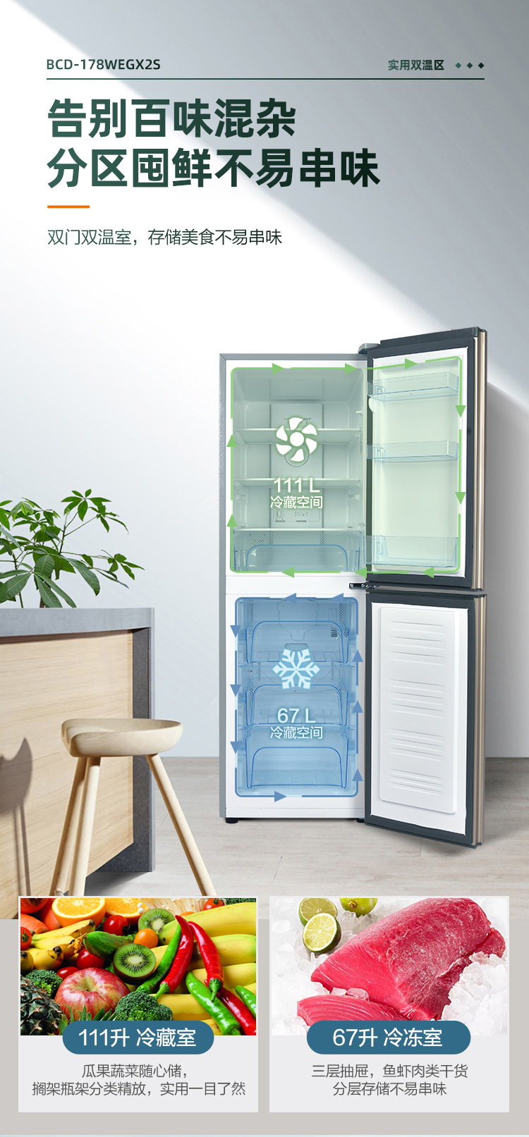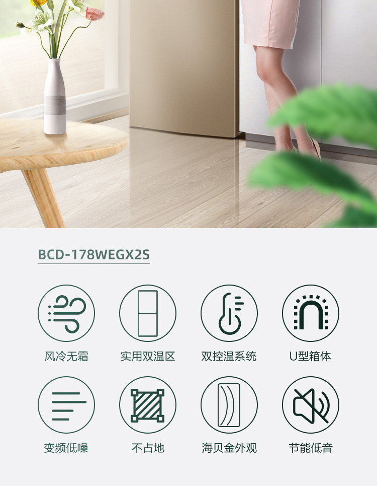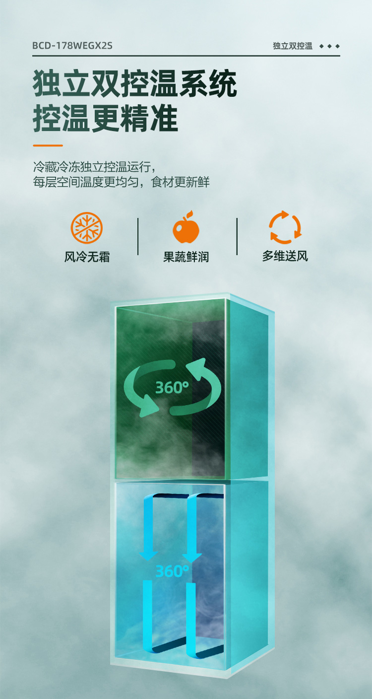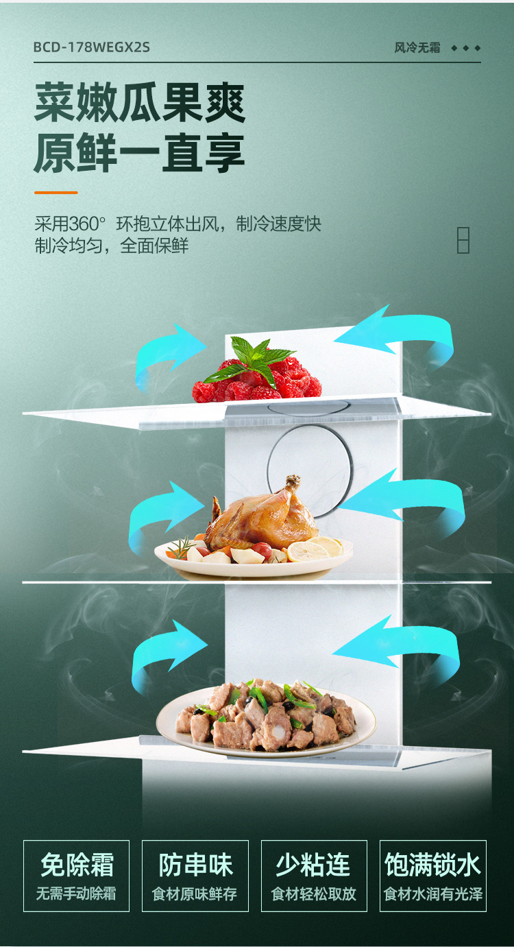 康佳180升风冷无霜双门冰箱小型家用电冰箱二门两门 节能省电低音超薄 迷你宿舍租房BCD-180WD2EGX