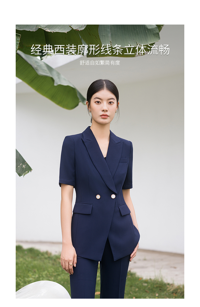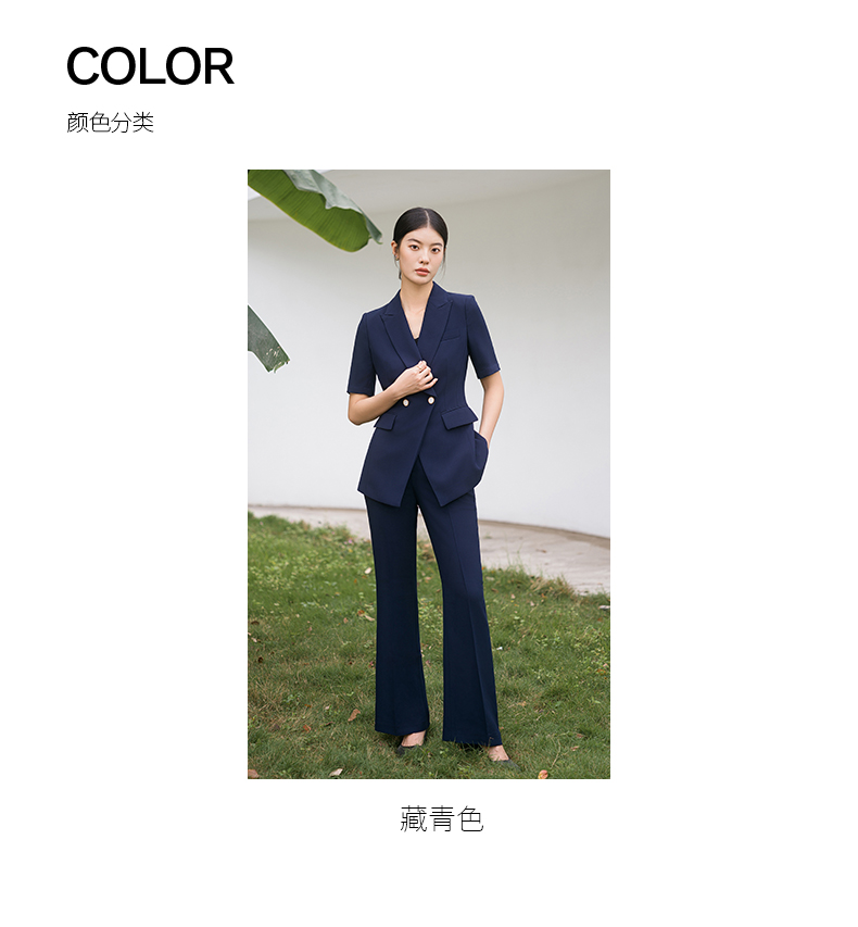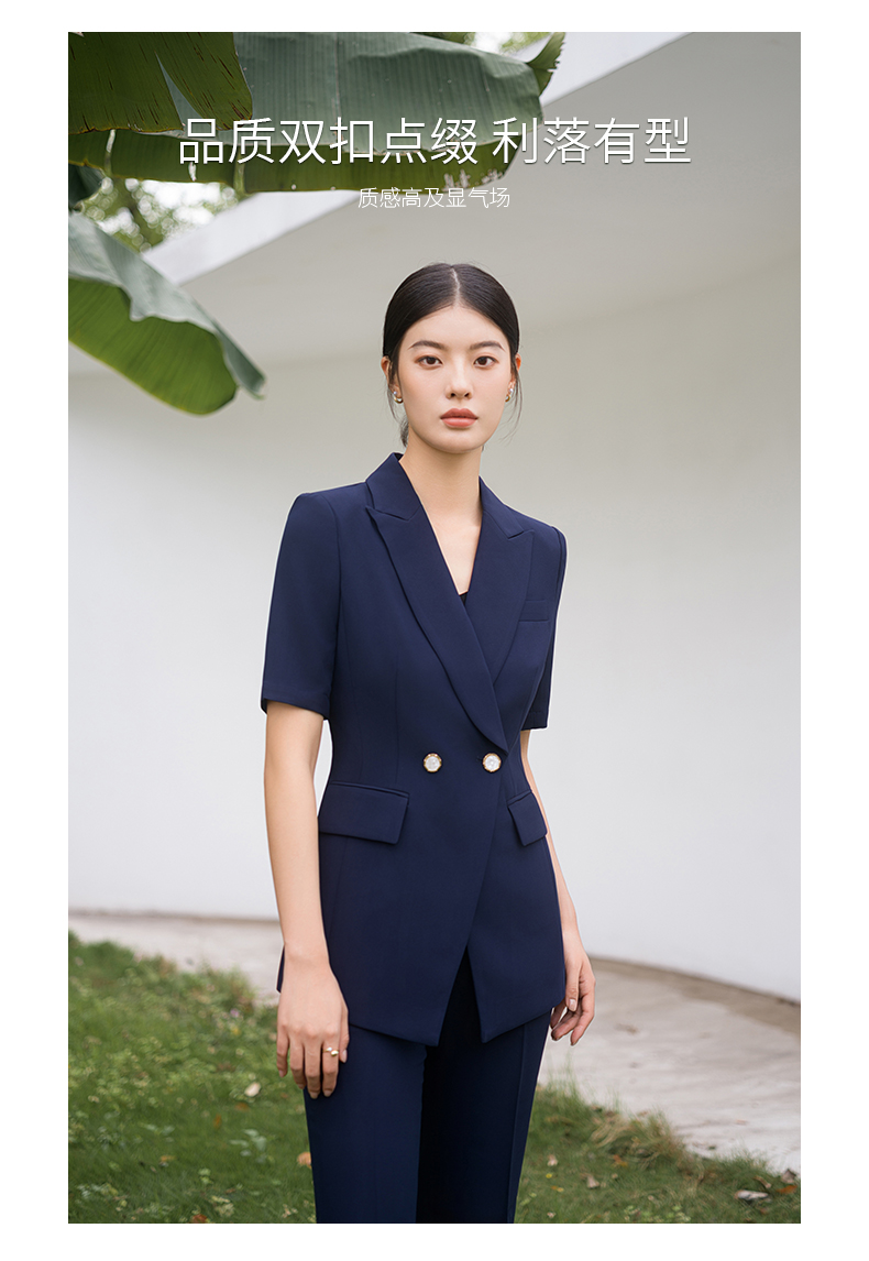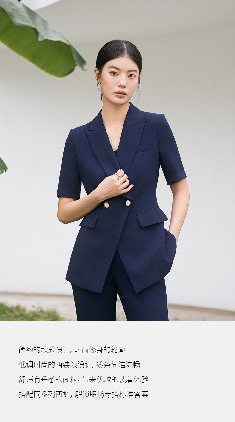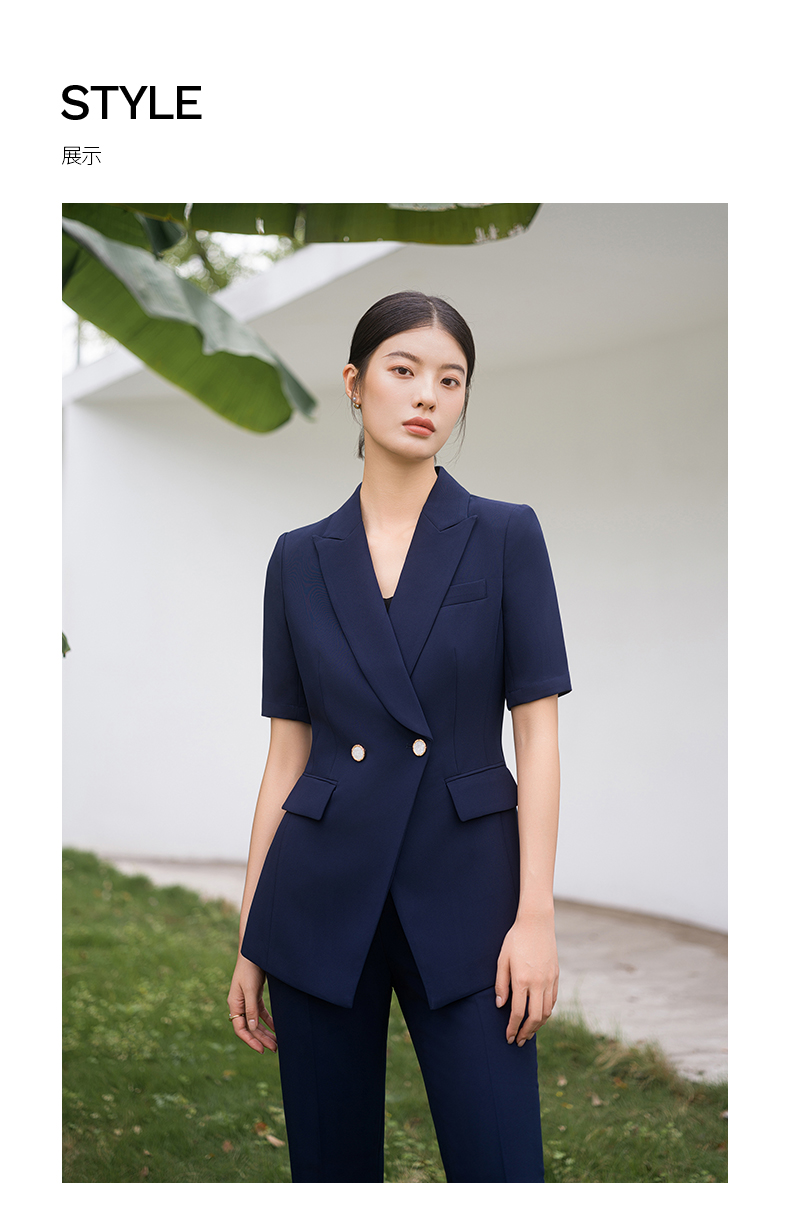 IWY/时尚藏青色西服套装宽松西装七分袖显瘦时尚高级版职业装裤装C13513+P33513藏青色