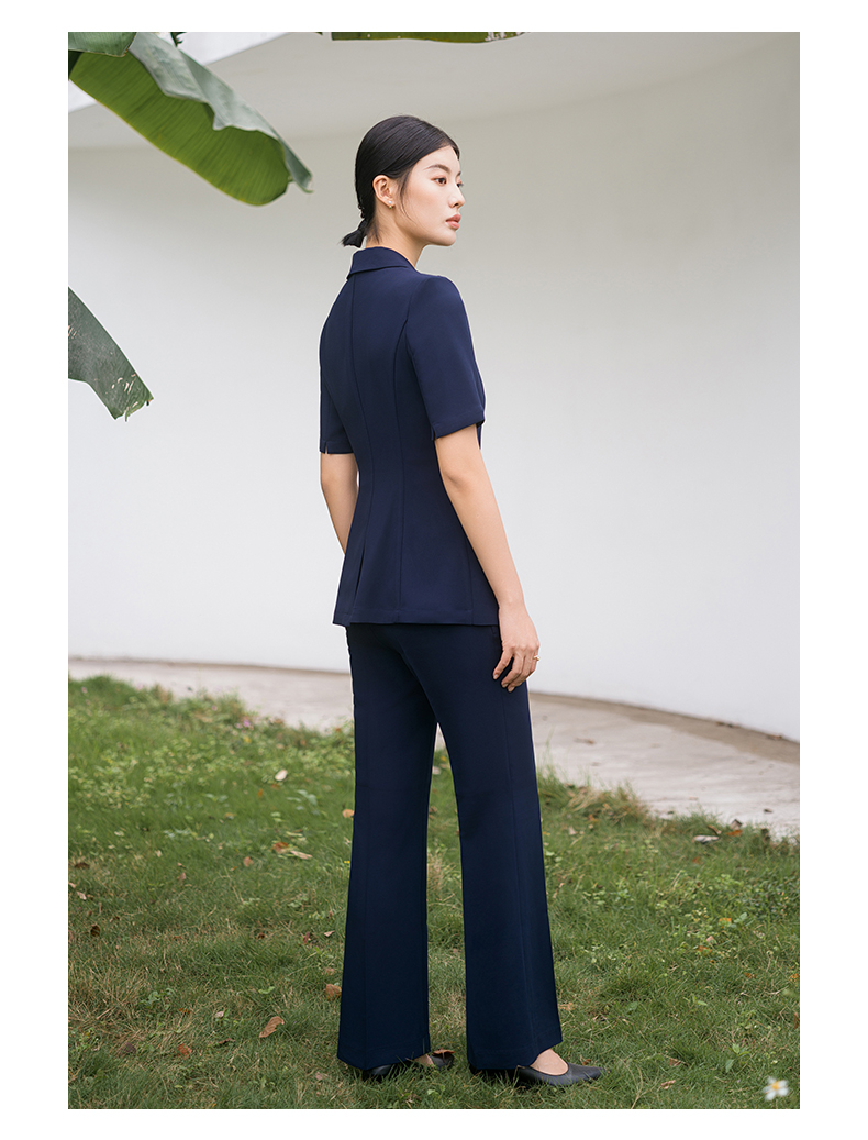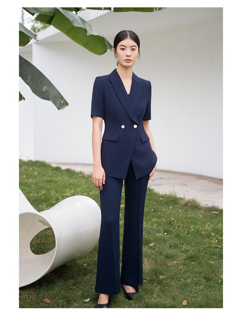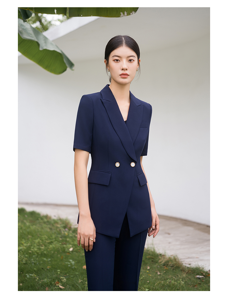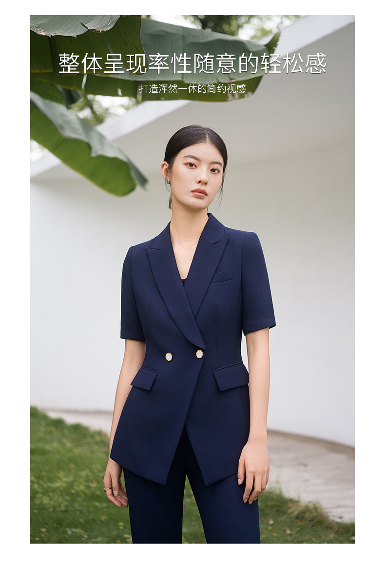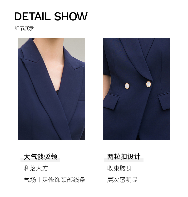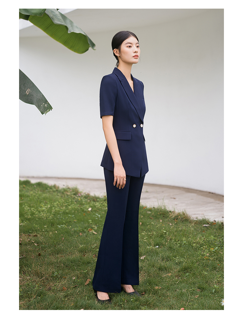 IWY/时尚藏青色西服套装宽松西装七分袖显瘦时尚高级版职业装裤装C13513+P33513藏青色
