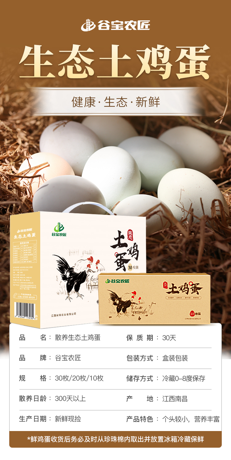 谷宝生态土鸡蛋30枚礼盒装