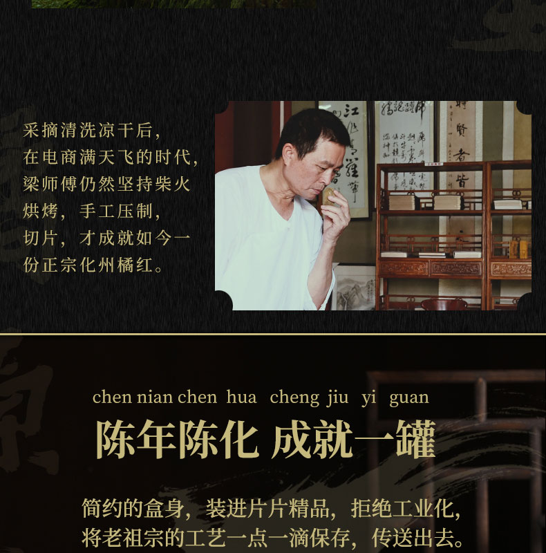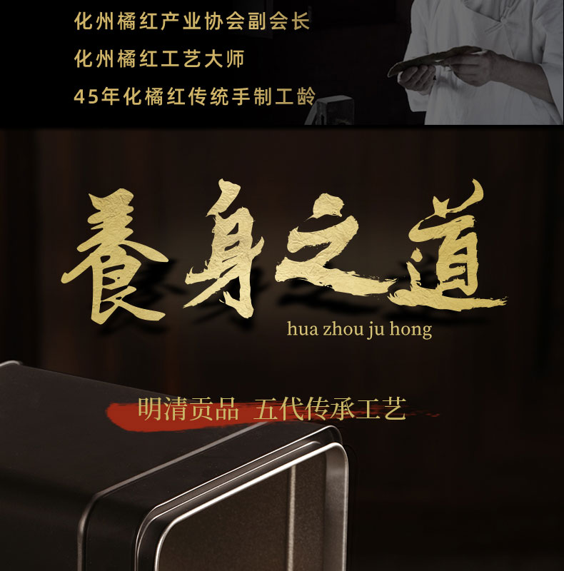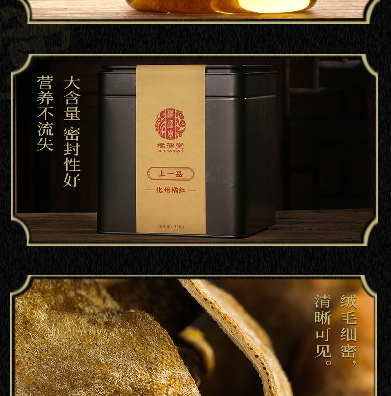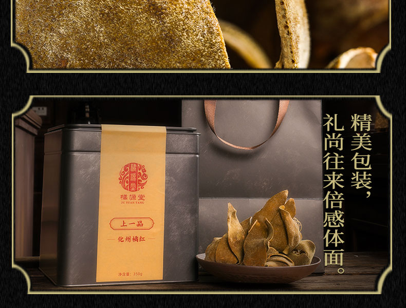 化州橘红【20年陈·上一品】甄选黄金胎果皮 咳嗽痰多 送礼办公室教师讲话多者宽中气顺 大师传承橘源堂橘红礼盒装 350g/罐