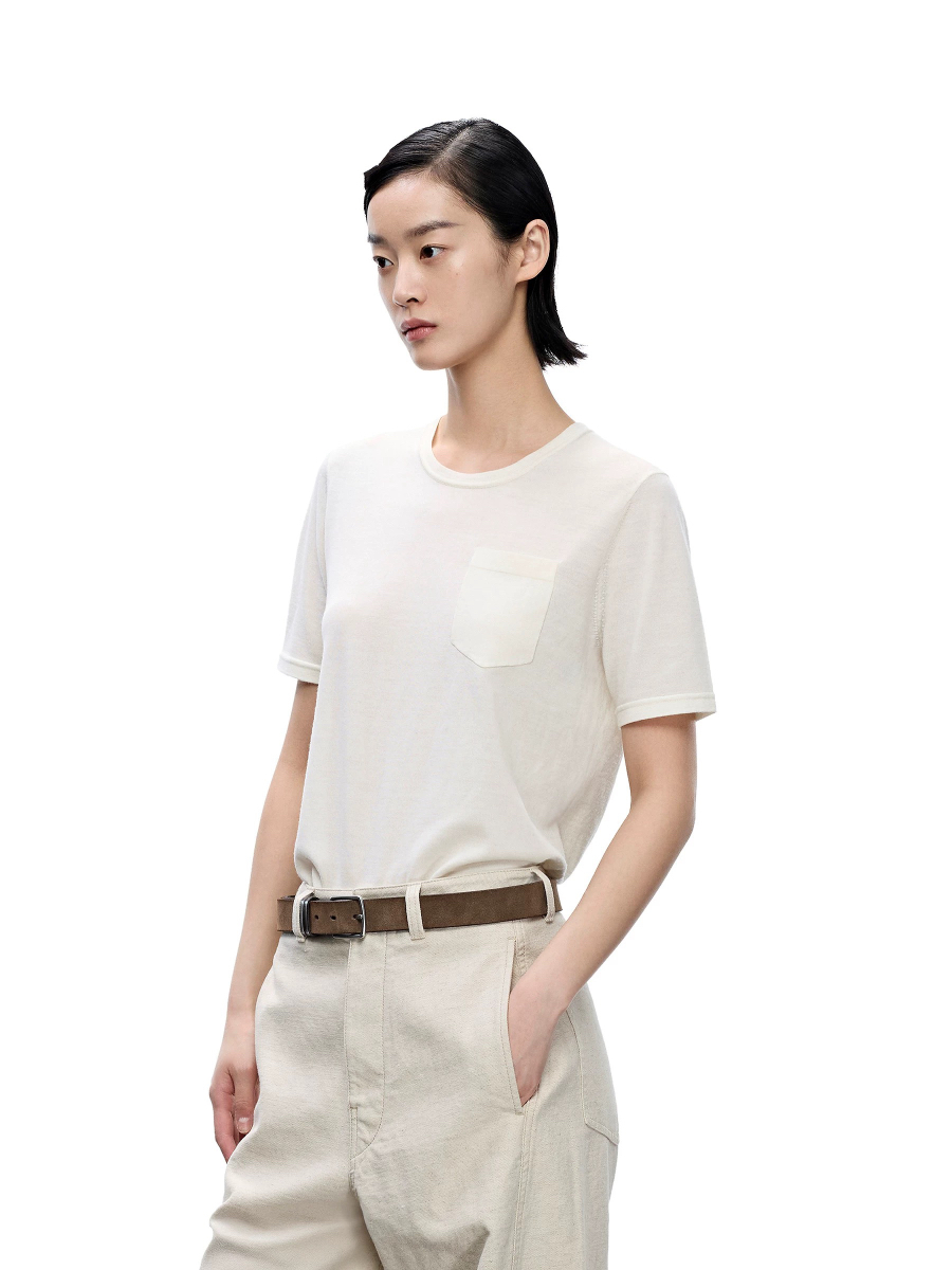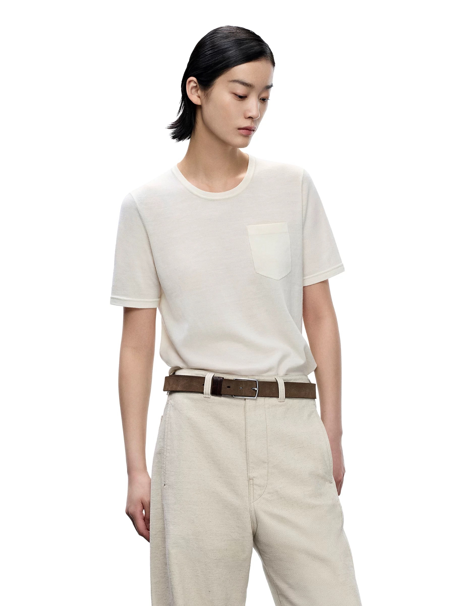 78-1 独家圆正 可机洗绵羊毛 EDS早秋 干爽透气 极简口袋 圆领针织短袖 我穿L