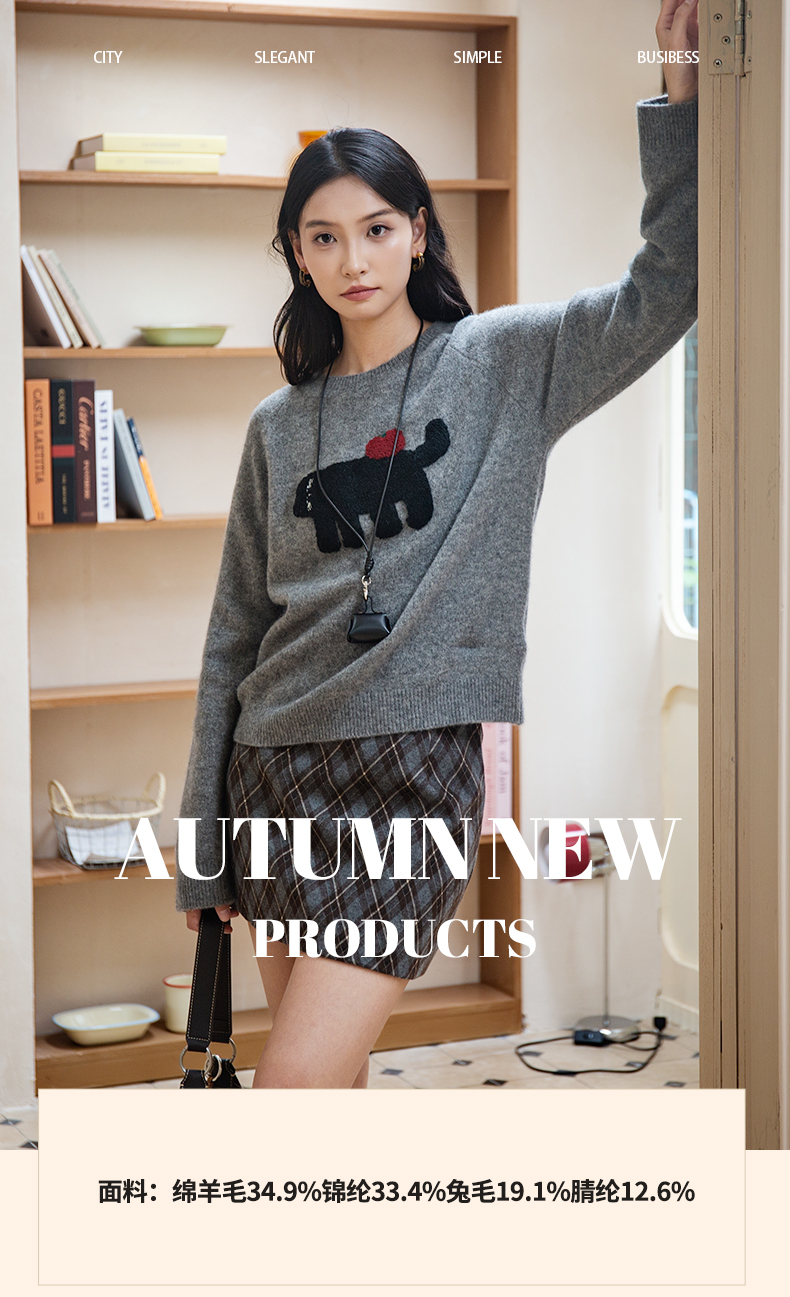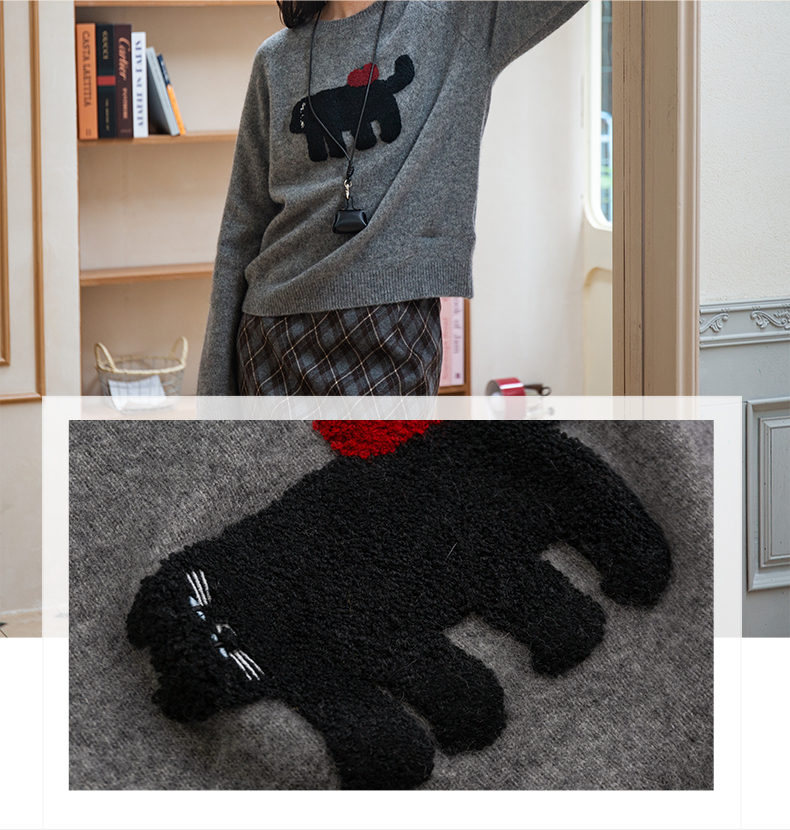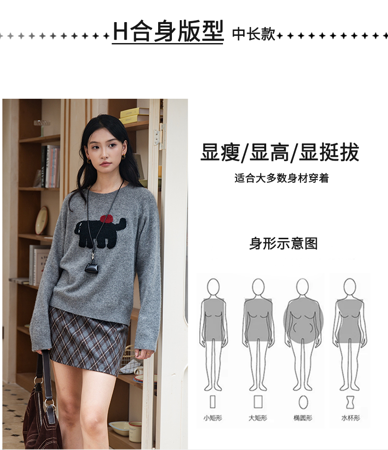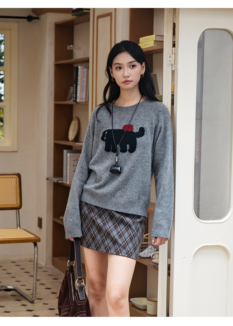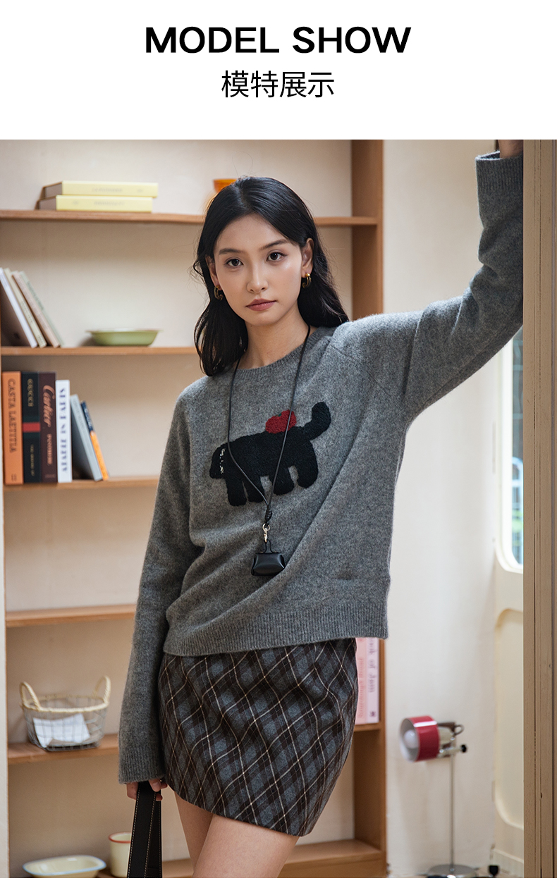 【门店同款】ENJOY冬季“暖冬知性”小狗图案针织上衣 166746380