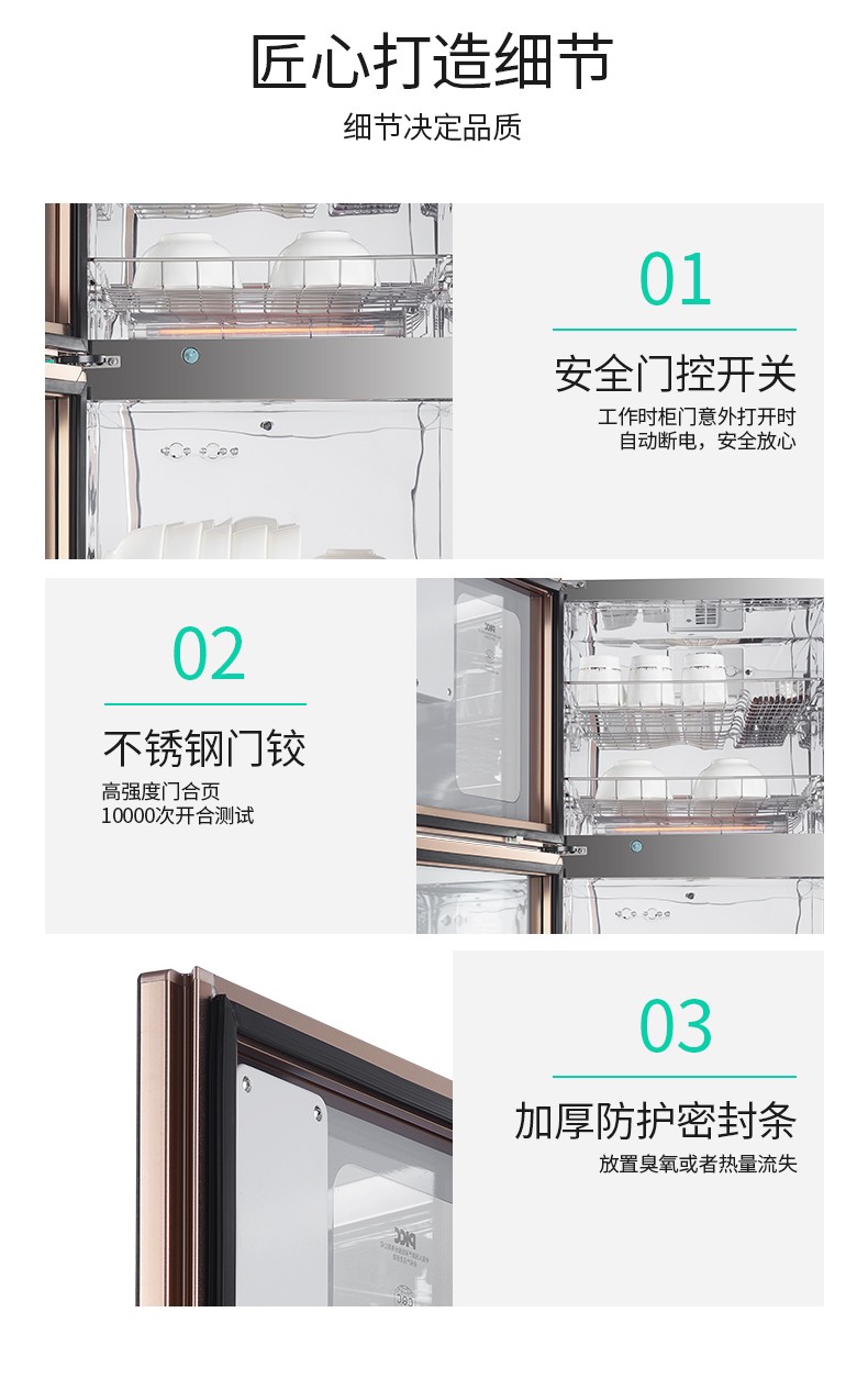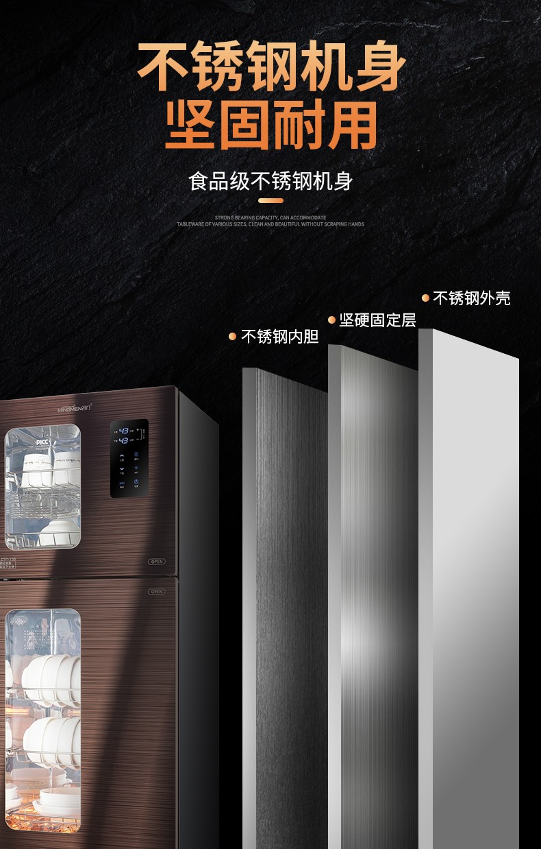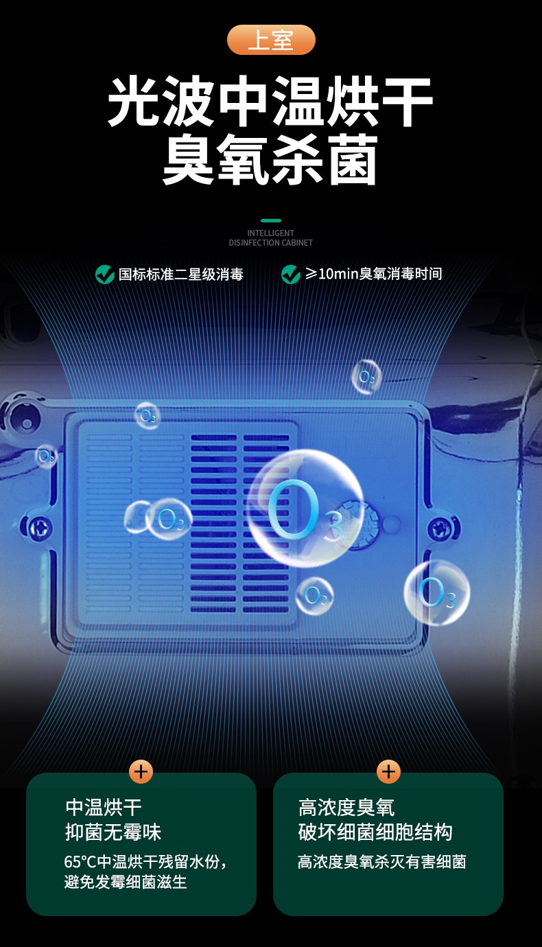 380 升名门消毒柜 -A98 WIFI语音控制 全钢化玻璃 上室臭氧光波 下室红外线高温580*490*1610(宽*深*高)