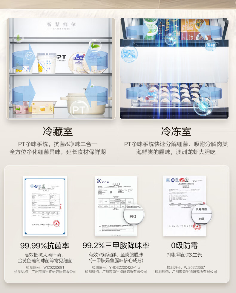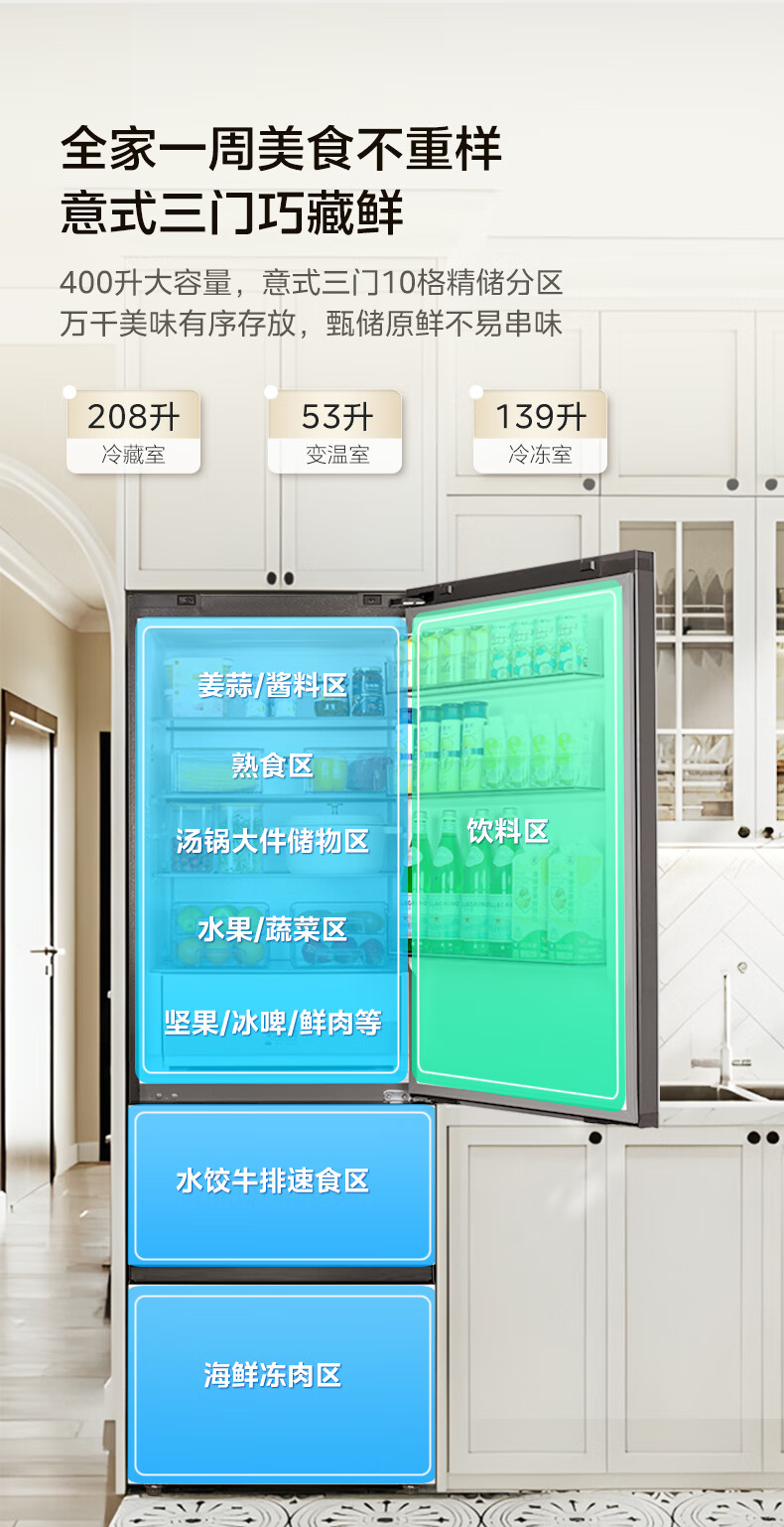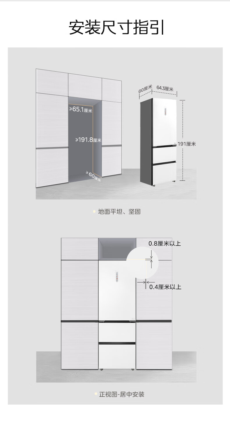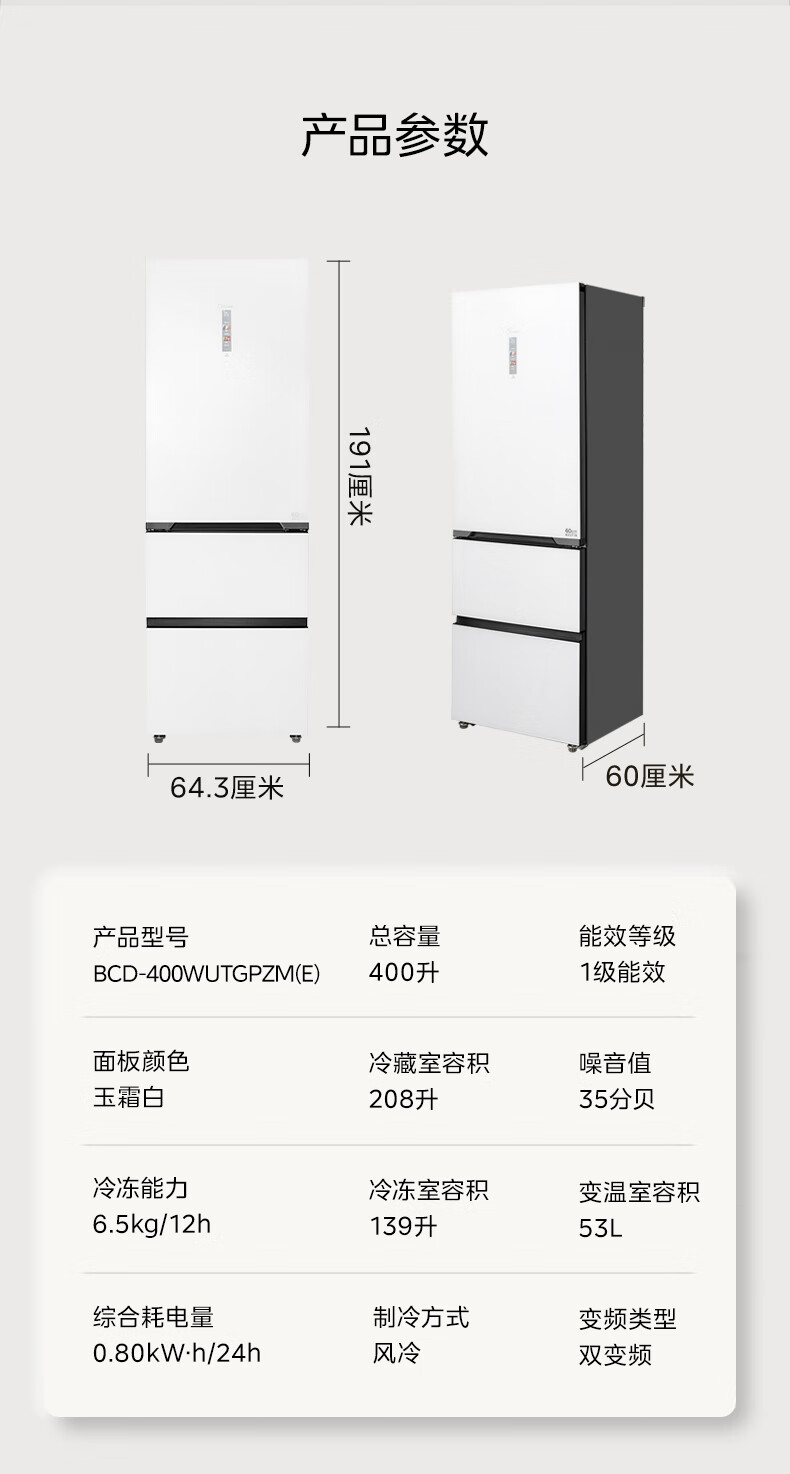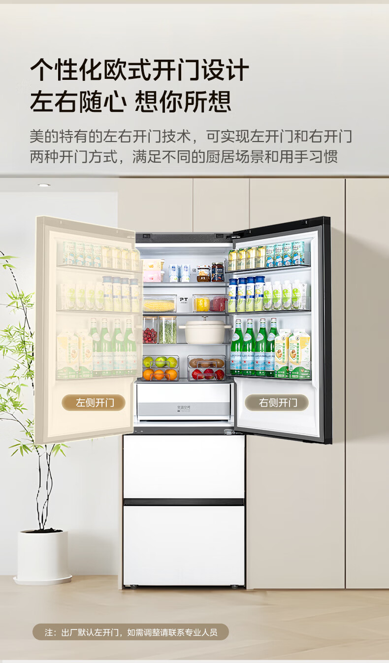 美的(Midea)60cm薄系列400升意式多门三门超薄可嵌入家用智能电冰箱BCD-400WUTGPZM(E)玉霜白