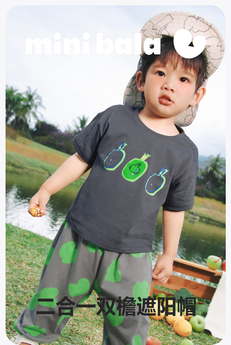 【双帽檐可拆卸儿童遮阳帽】迷你巴拉男女童空顶防晒帽子夏季