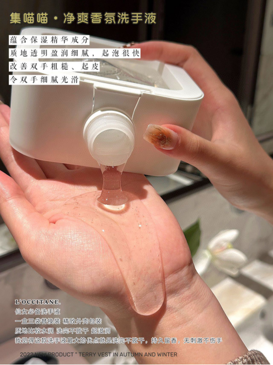 集喵喵真能处!比香水还好闻的洗手液 我现在都有养成做啥事前都会洗手 这个洗手液按压出来是透明质地 洗完手不会拔干紧绷 不伤手还做到了有效护手! 一双水嫩嫩的美丽手手谁能不爱呢? 集喵喵必不可少的选择‼ 不仅香气舒适,还能滋养手部肌肤 还具有神仙颜值 给你洗手新体验 轻轻一按,纵享“泡泡”SPA 瞬间俘获你的少女心