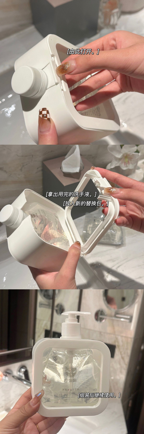 替换方法超简单 三步完成替换 清清爽爽的净爽香氛洗手液 全身都是透明的‼ 让洗手成为一种享受~ 每次用它洗手,都觉幸福感倍增 太太太舒服了!! 感觉手上根本就没有细菌的存在呢