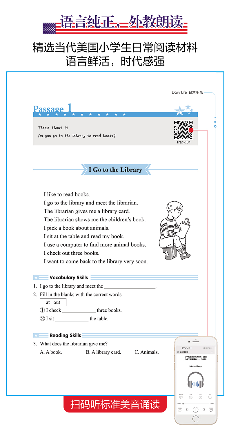 小学英语阅读拓展训练 美国小学生阅读精选 1、2年级/一二年级 二维码听读 华东理工大学出版社