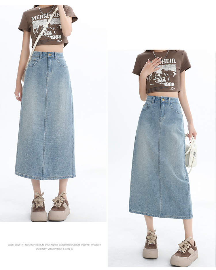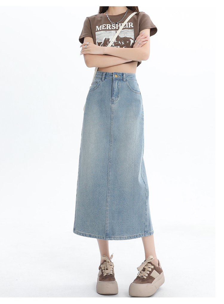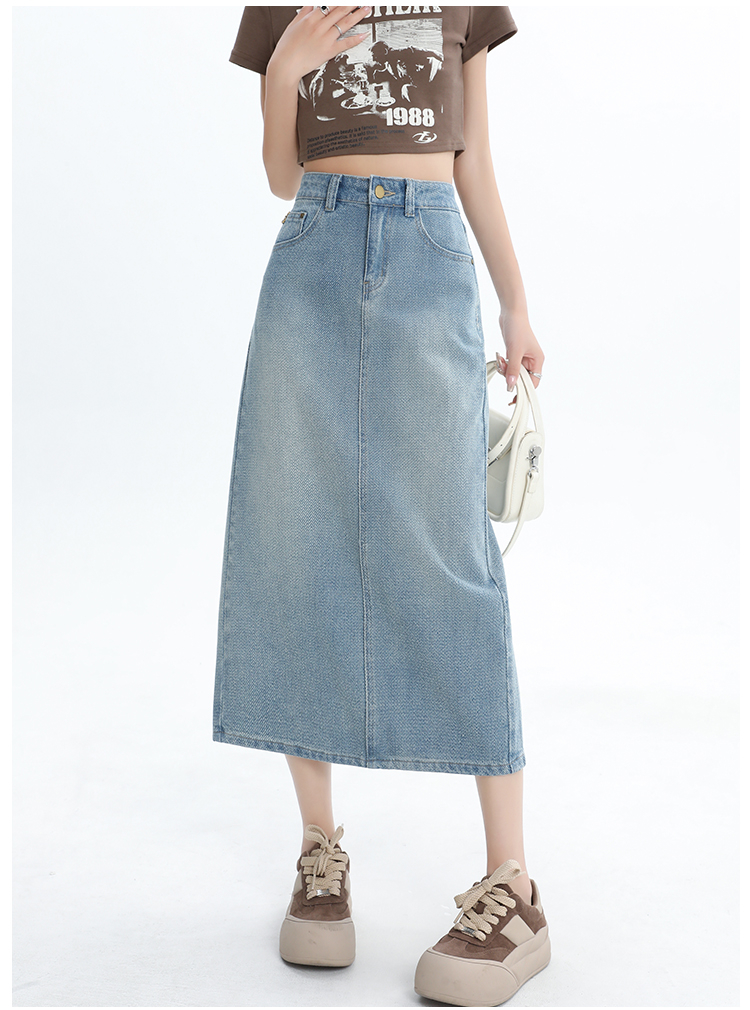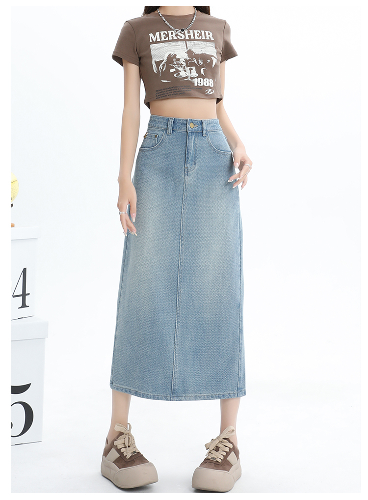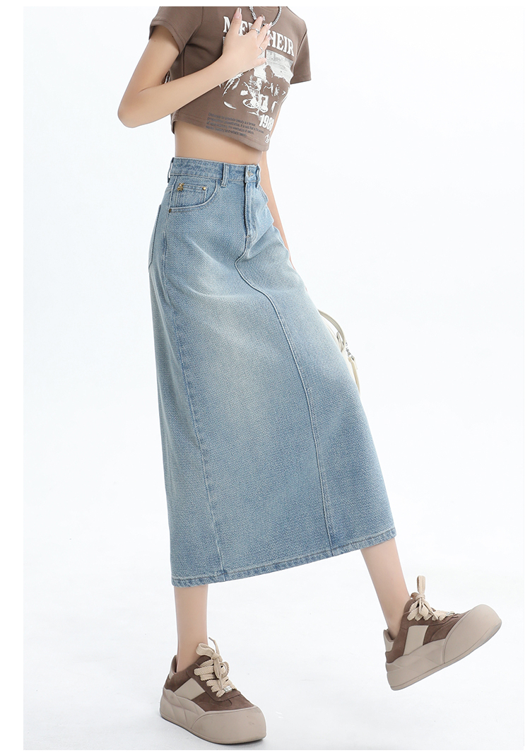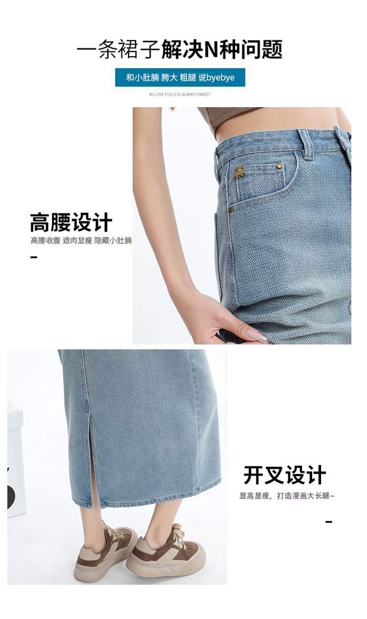 【HEY+JEANS】 后开叉高腰牛仔半身裙