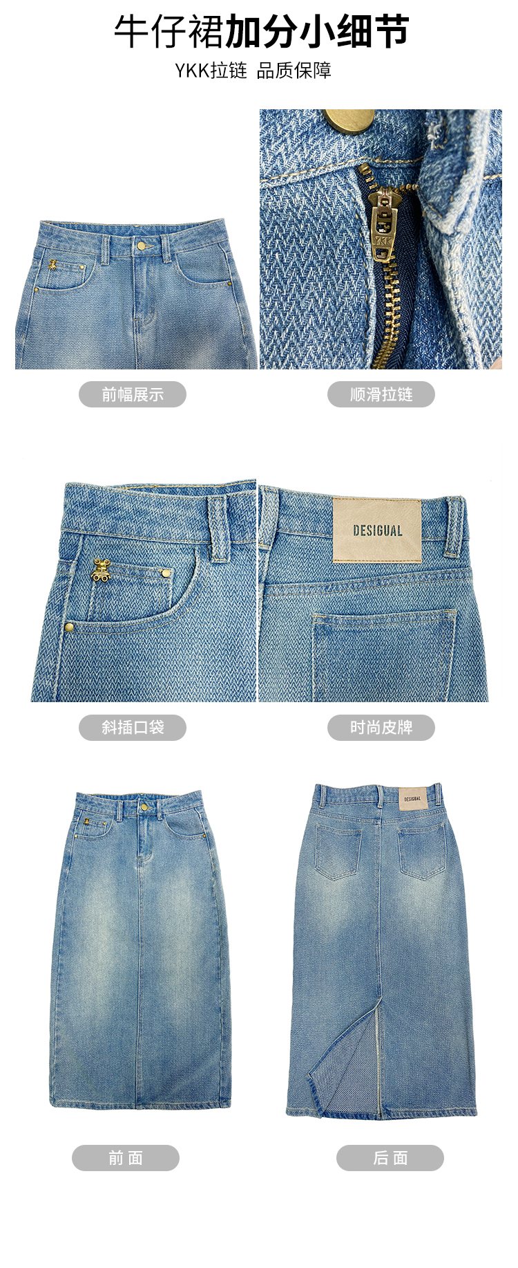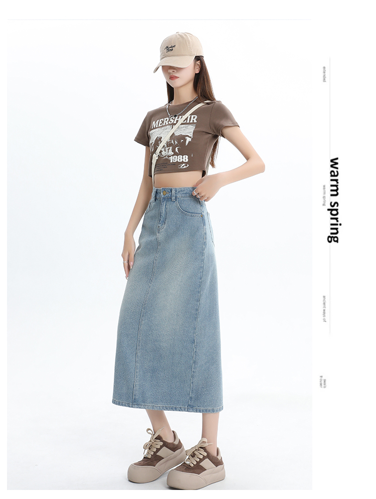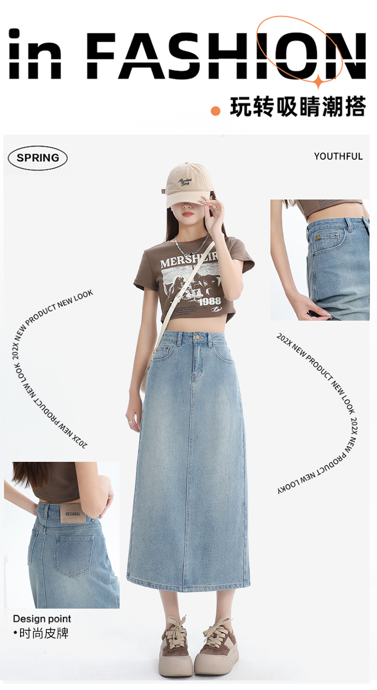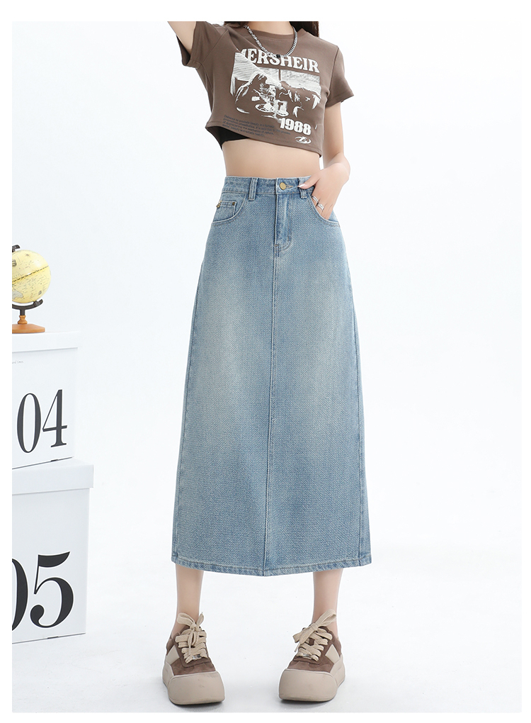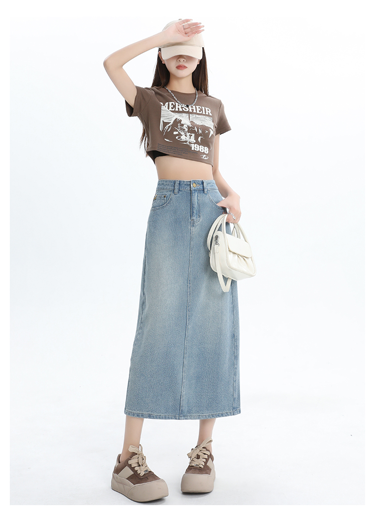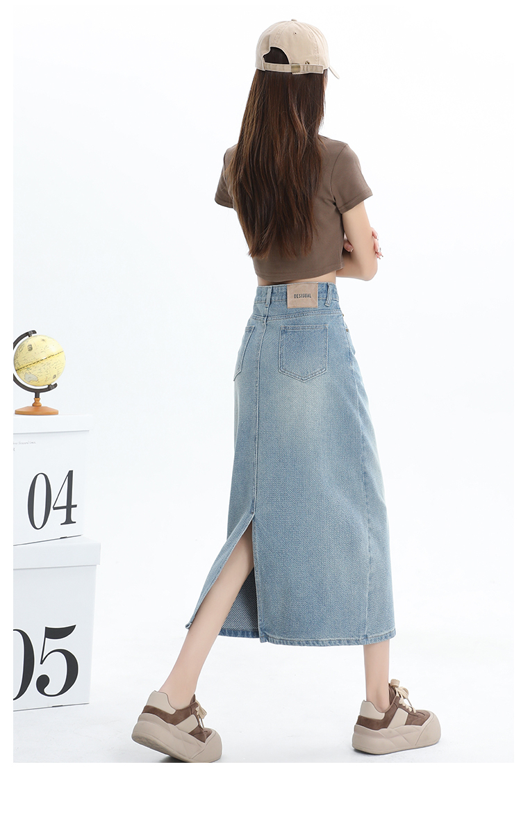 【HEY+JEANS】 后开叉高腰牛仔半身裙