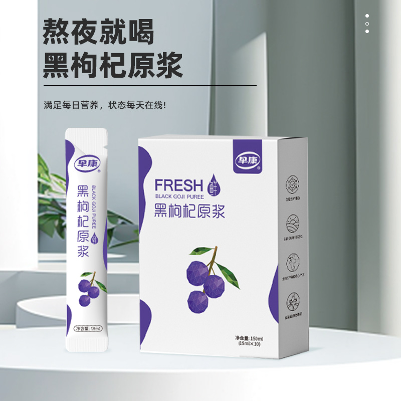 【早康黑枸杞原浆 4盒】满满花青素 +多重营养 “透支”的精力容颜喝回来 好喝 不加色素防腐剂 15ml*10袋装/盒