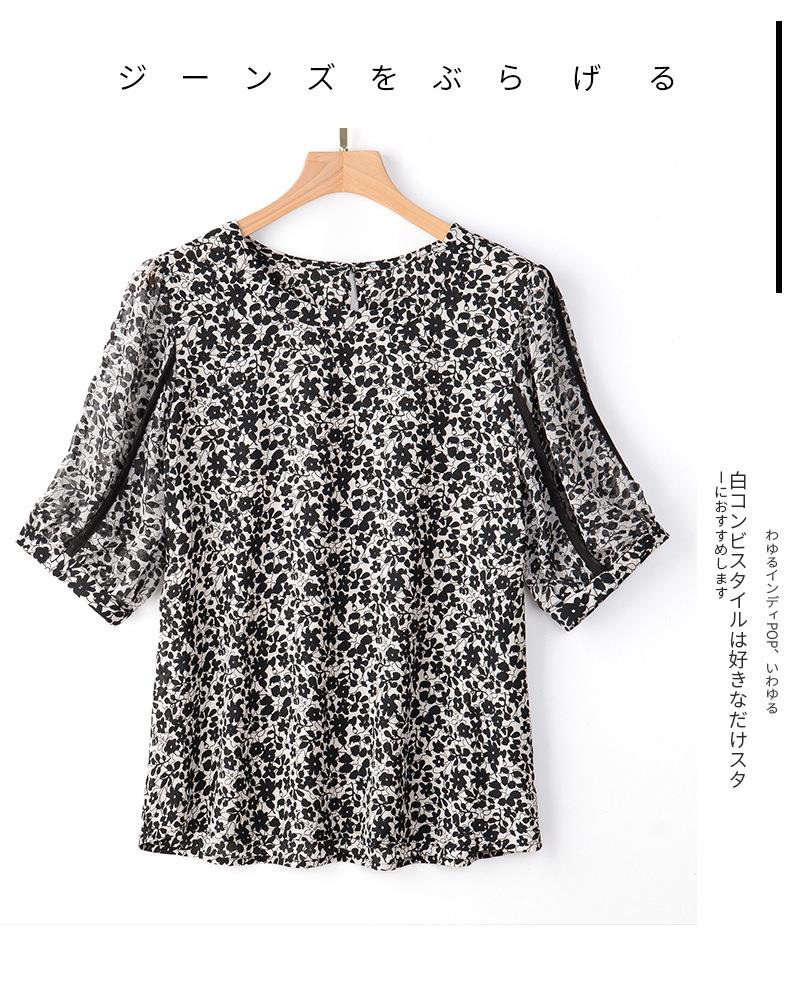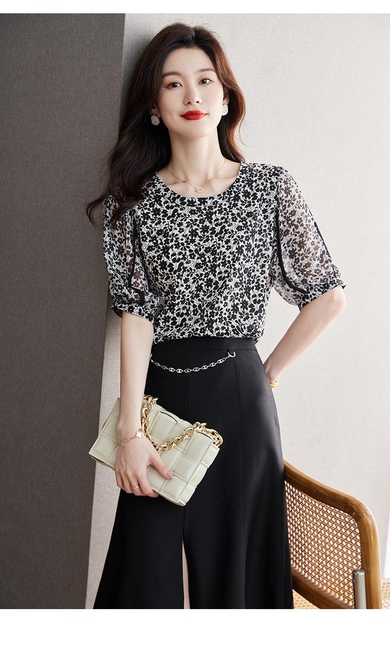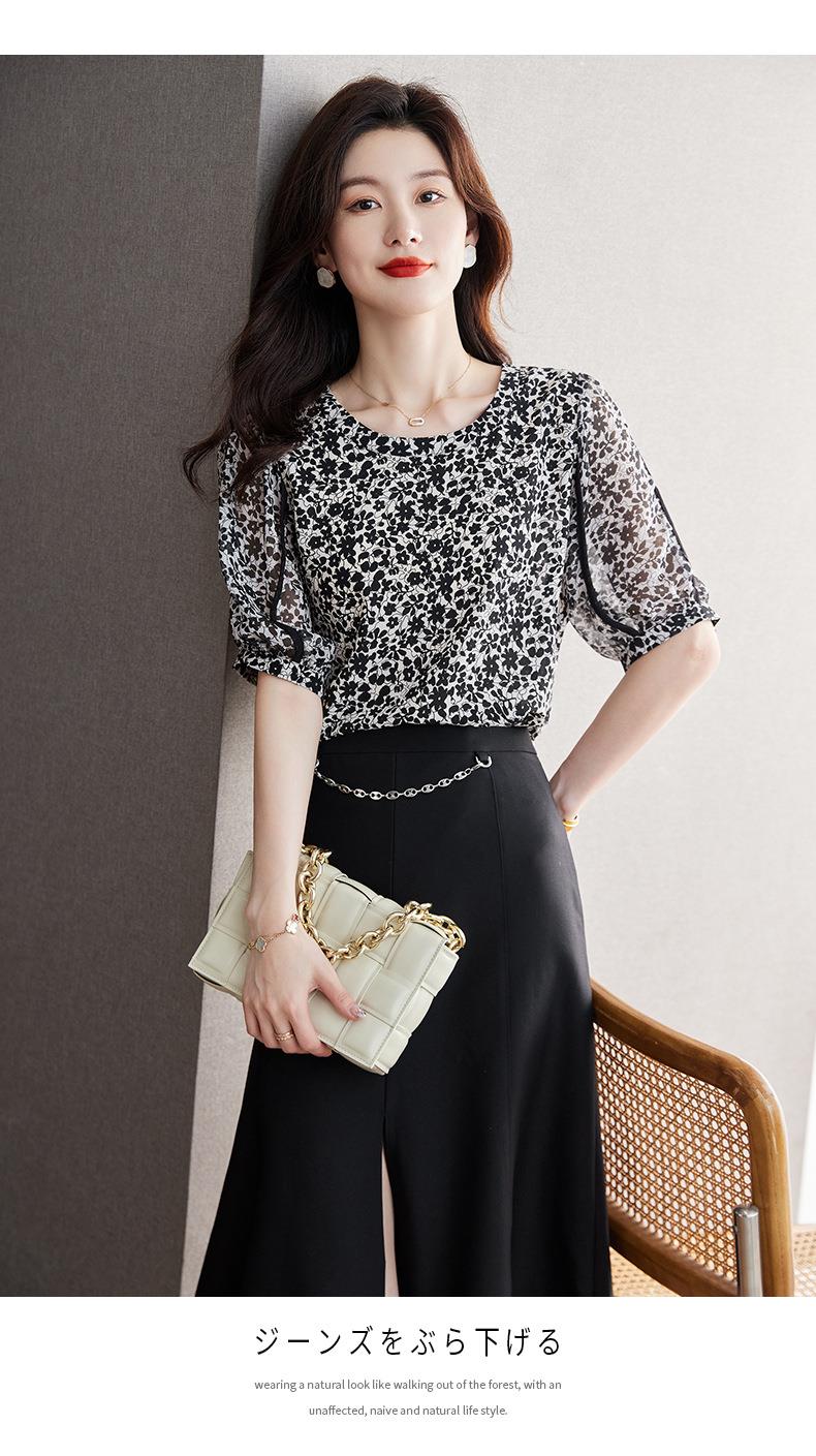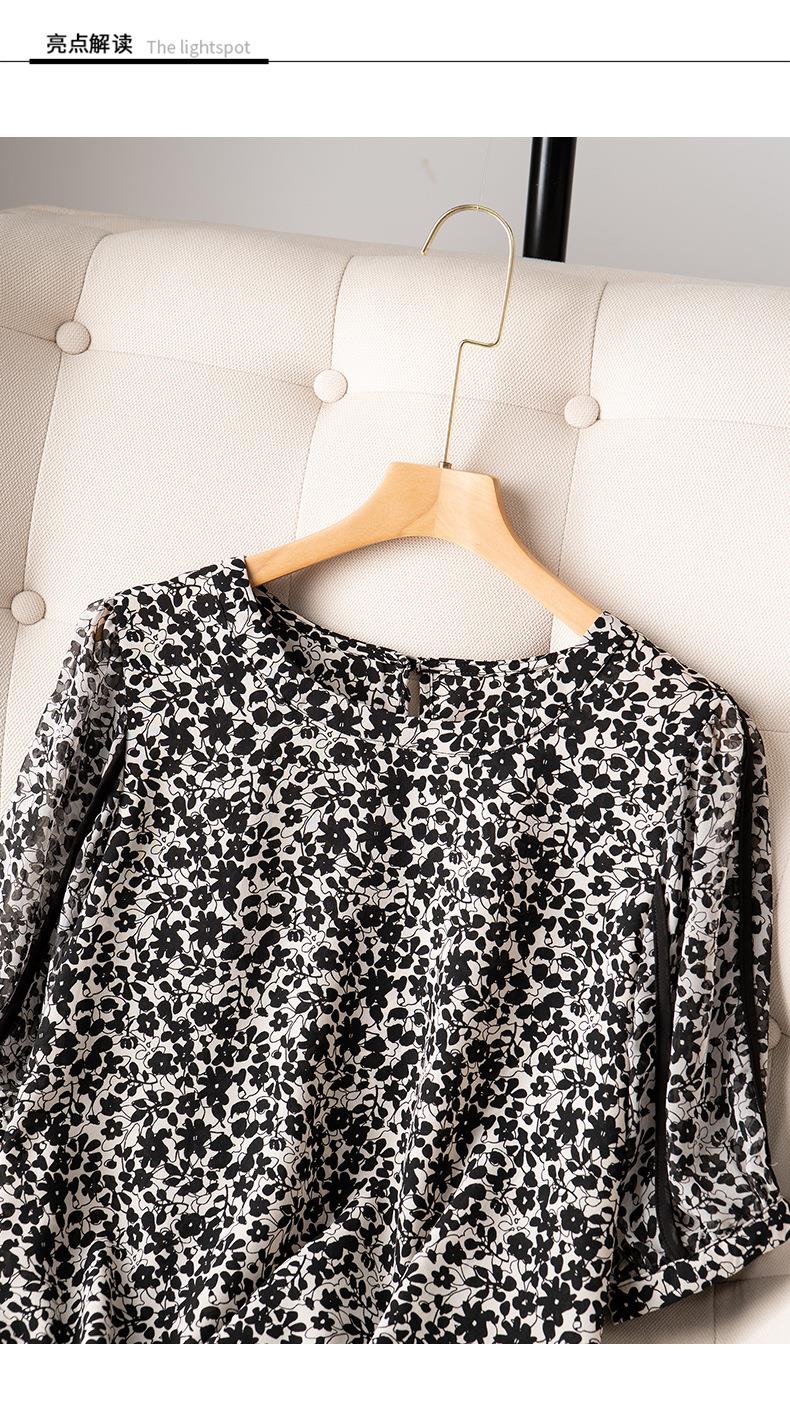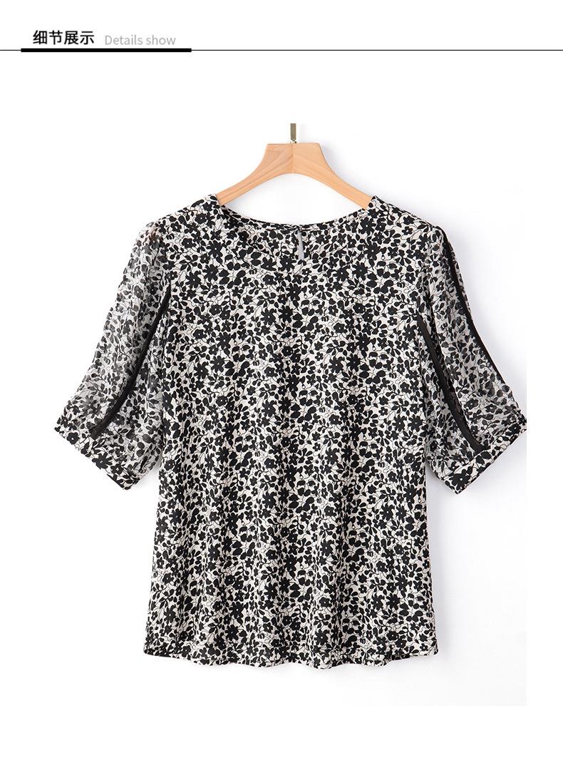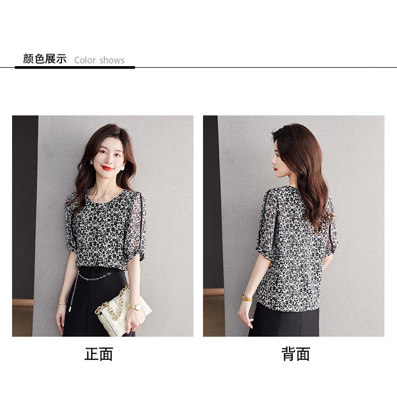 2023夏季新款雪纺衫五分袖衬衫女大码T恤圆领小衫5020
