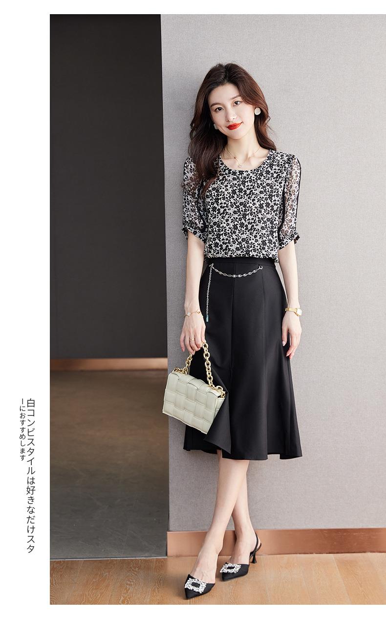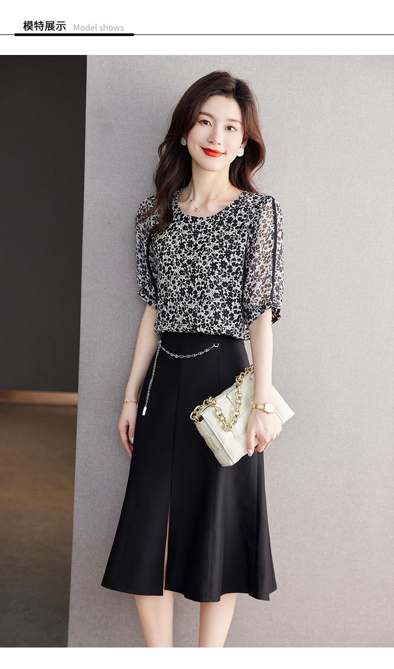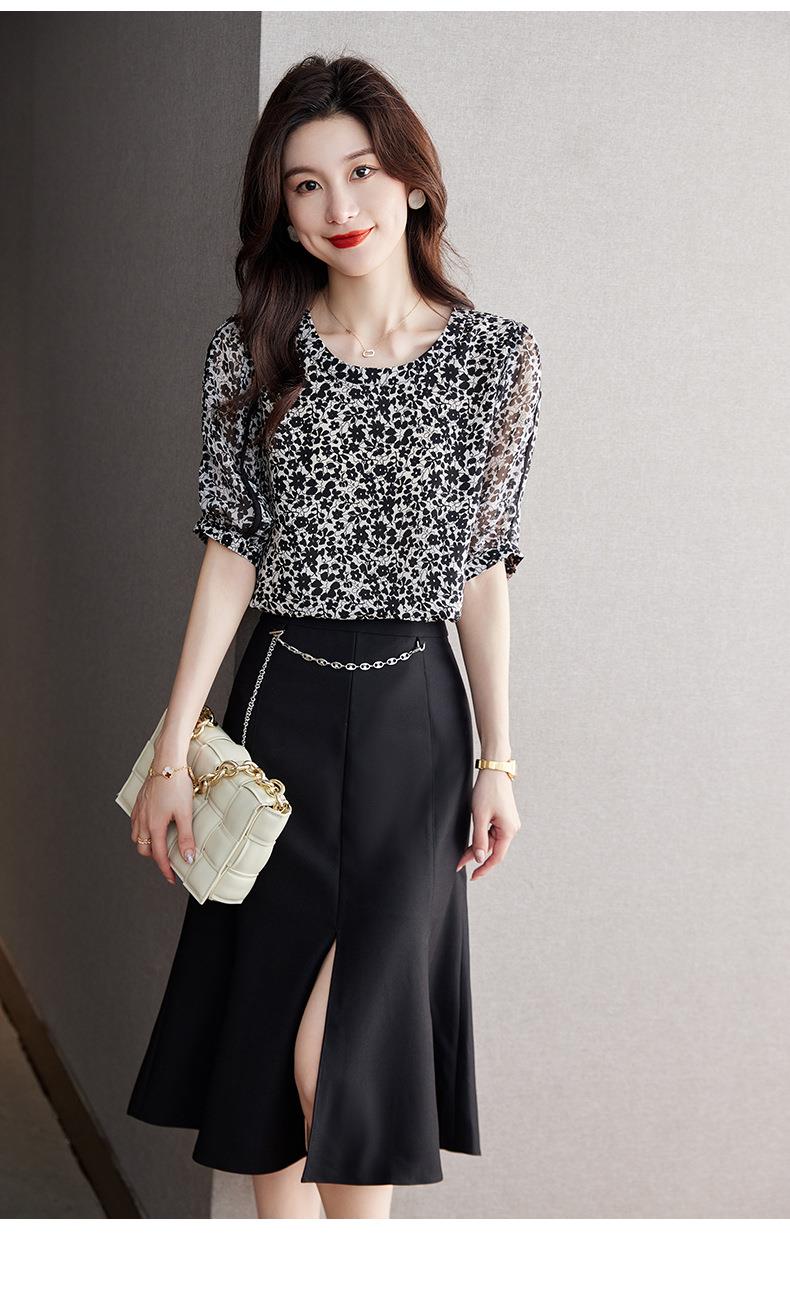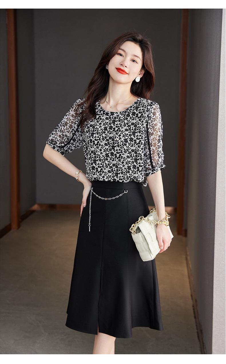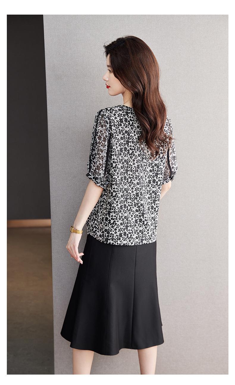 2023夏季新款雪纺衫五分袖衬衫女大码T恤圆领小衫5020