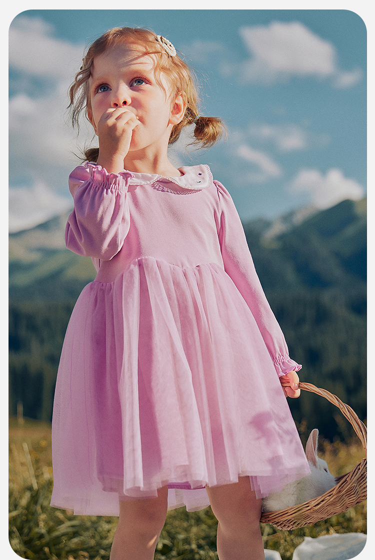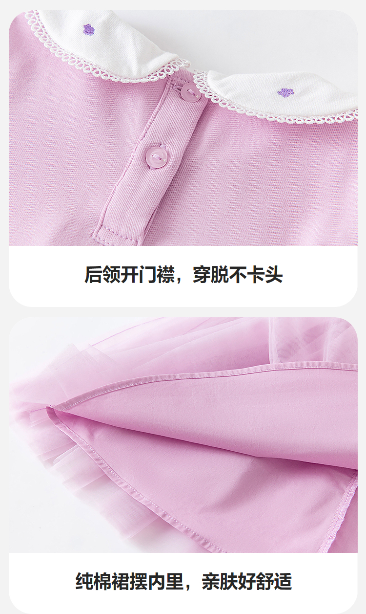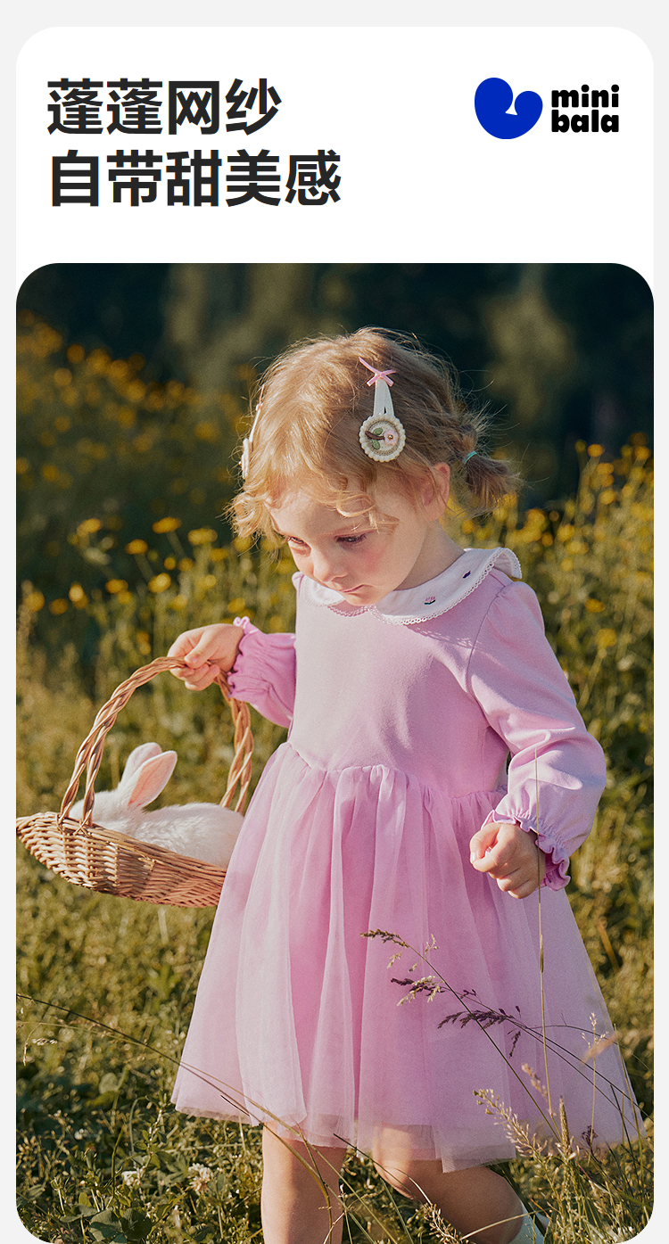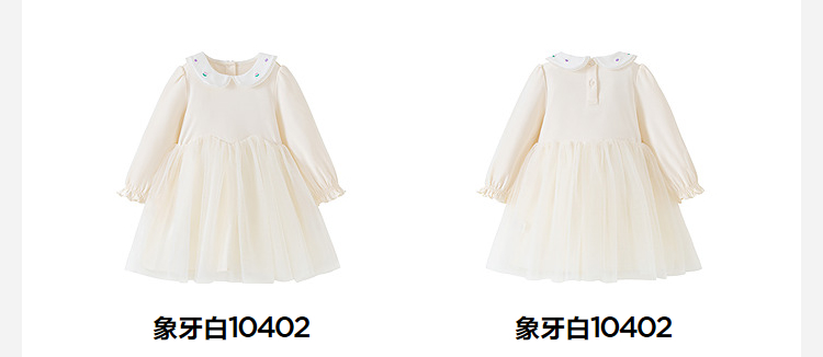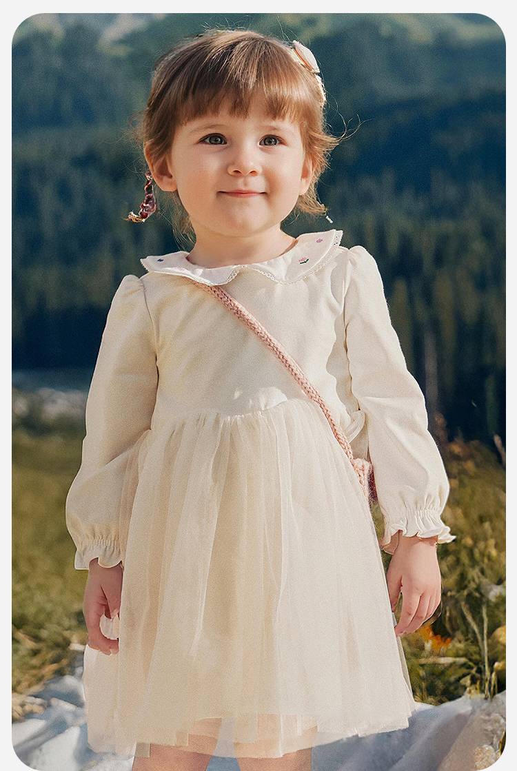 迷你巴拉女童儿童甜美刺绣翻领连衣裙亲肤柔软A字裙网纱裙子