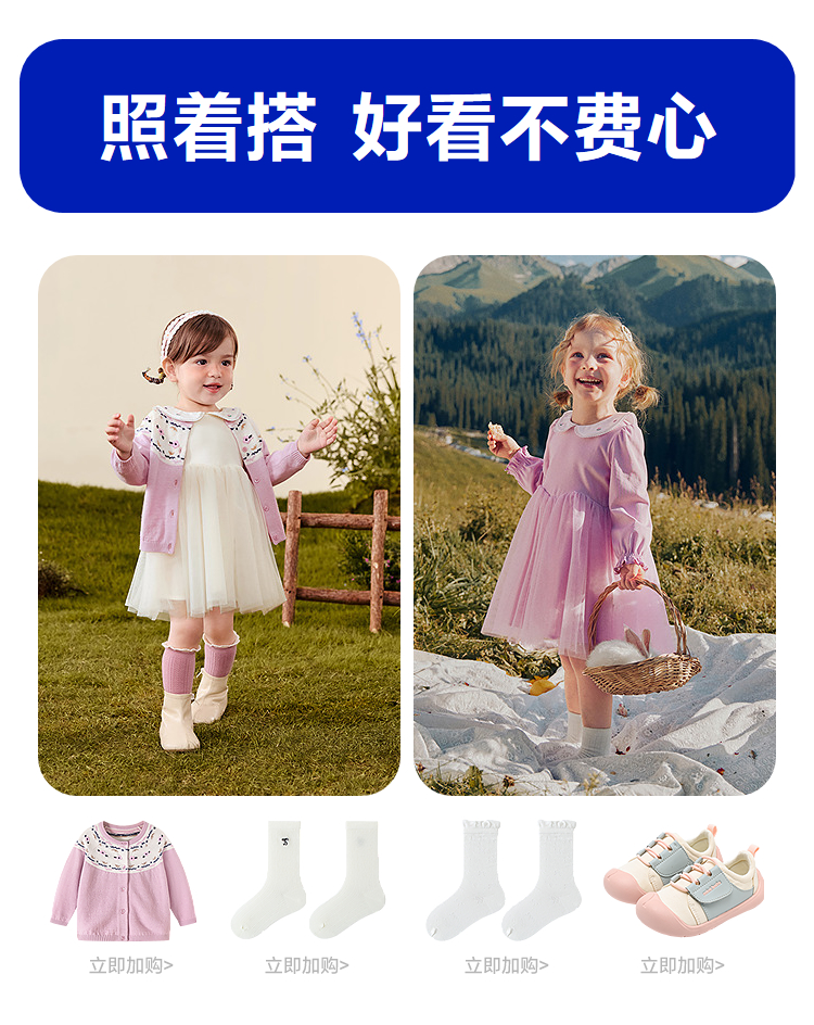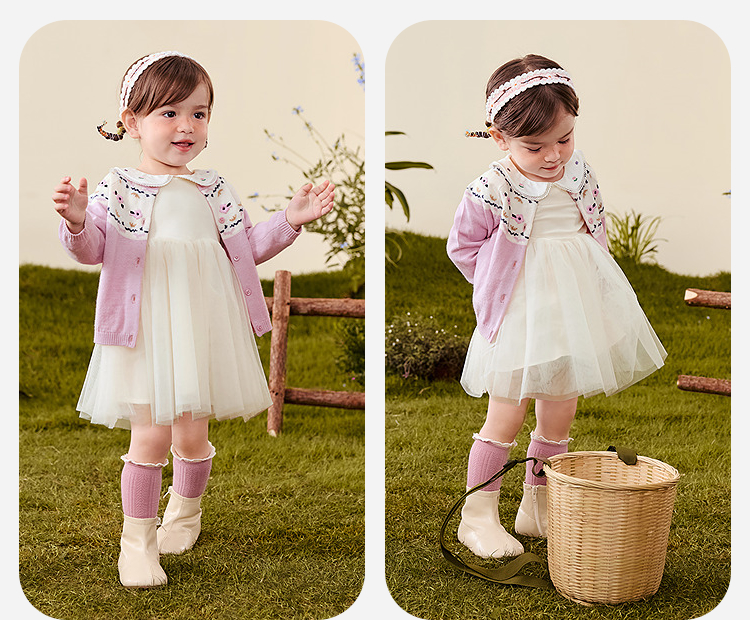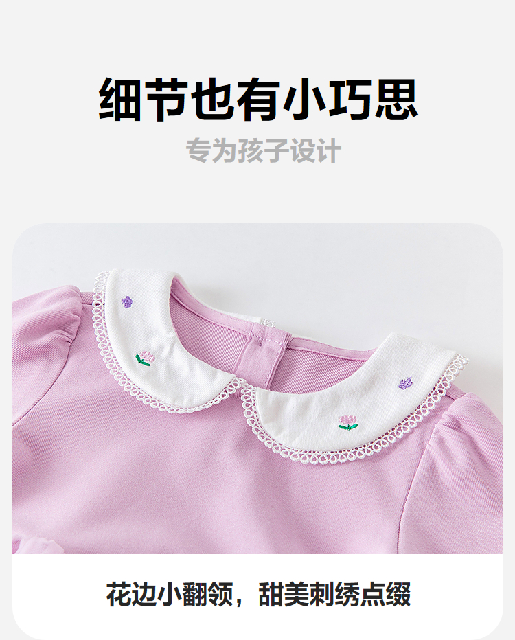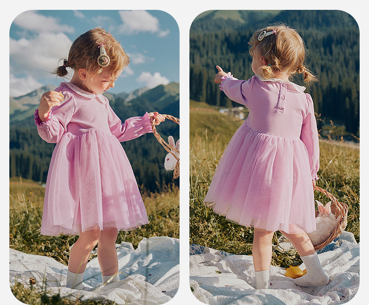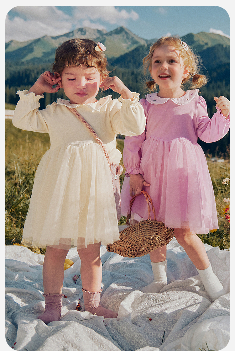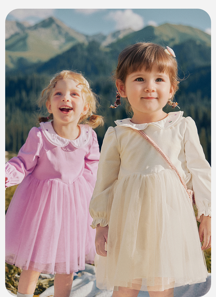 迷你巴拉女童儿童甜美刺绣翻领连衣裙亲肤柔软A字裙网纱裙子