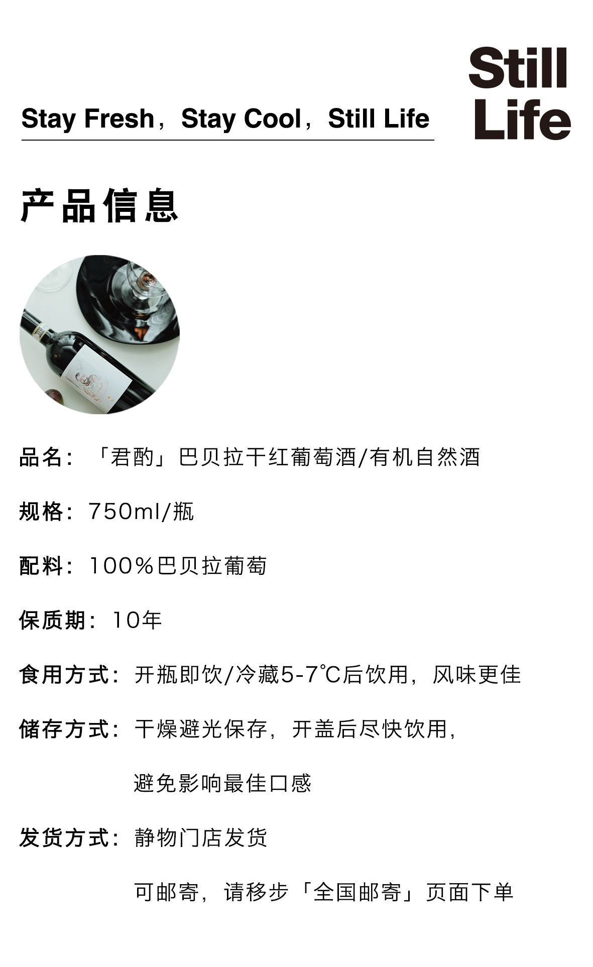「君酌」巴贝拉干红葡萄酒/有机自然酒750ml|意大利