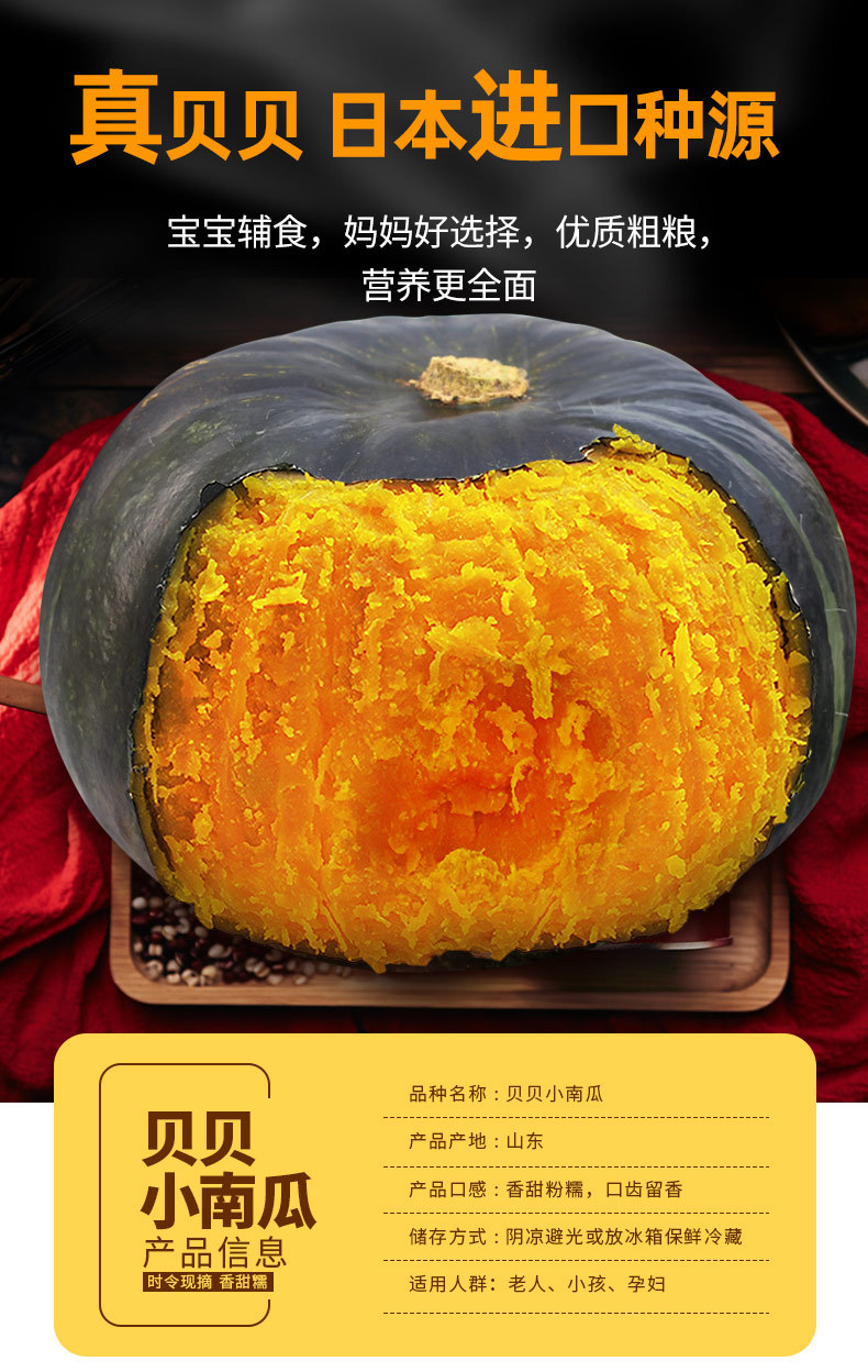 【产品亮点】老贝贝南瓜,口感好,板栗味,宝宝辅食,水瓜赔偿