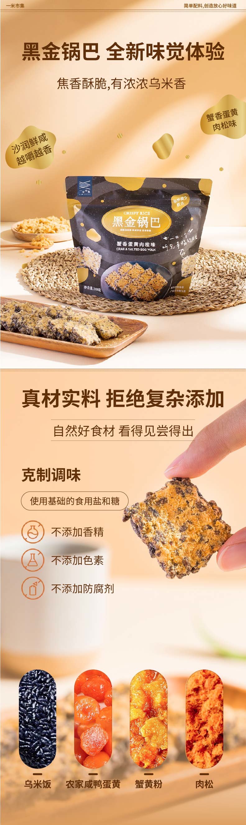 一米市集严选 黑金锅巴(蟹香蛋黄肉松味)108g/袋*2 浓浓乌米香 焦香酥脆 料足味鲜