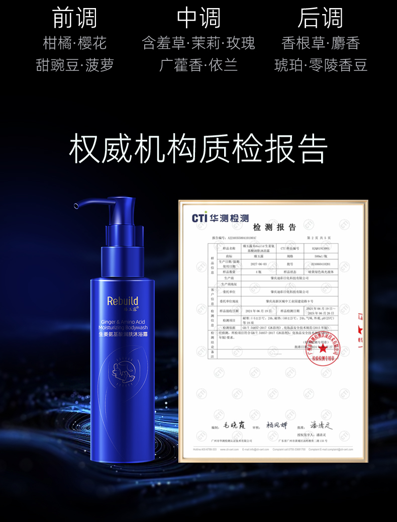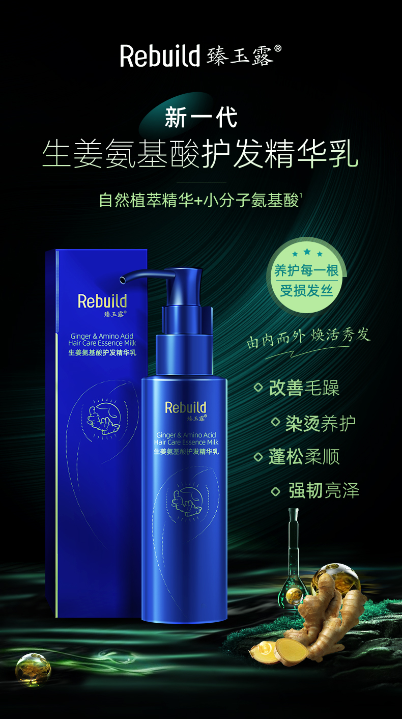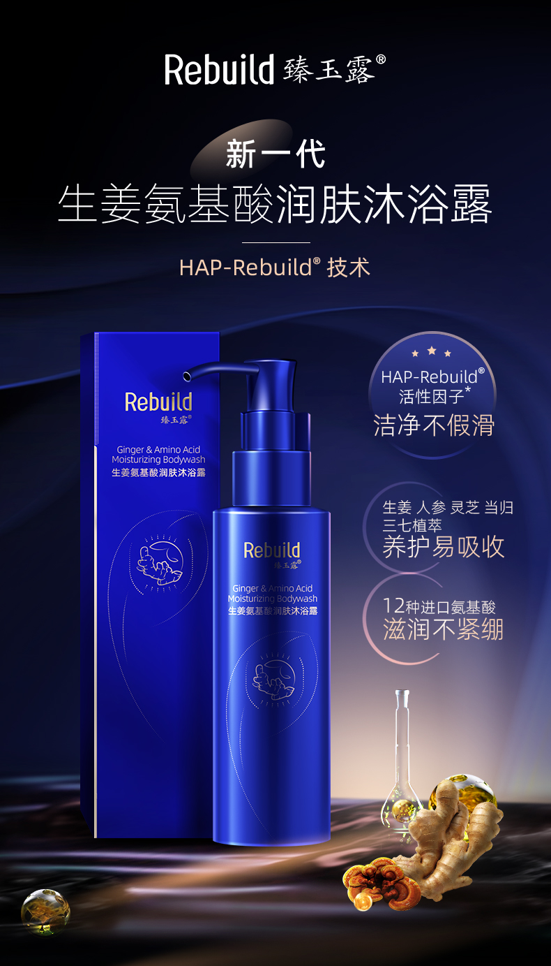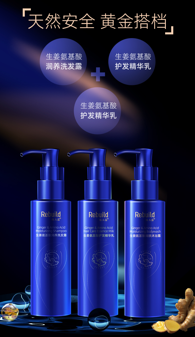臻玉露Rebuild生姜氨基酸洗发水沐浴露套装男女通用去屑控油滋润 洗发露+护发乳+沐浴露