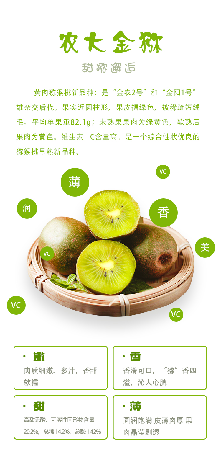 (1)农大金猕由于采摘时的成熟度不同,猕猴桃果肉颜色会略有差异,介于黄绿之间,介意慎拍;