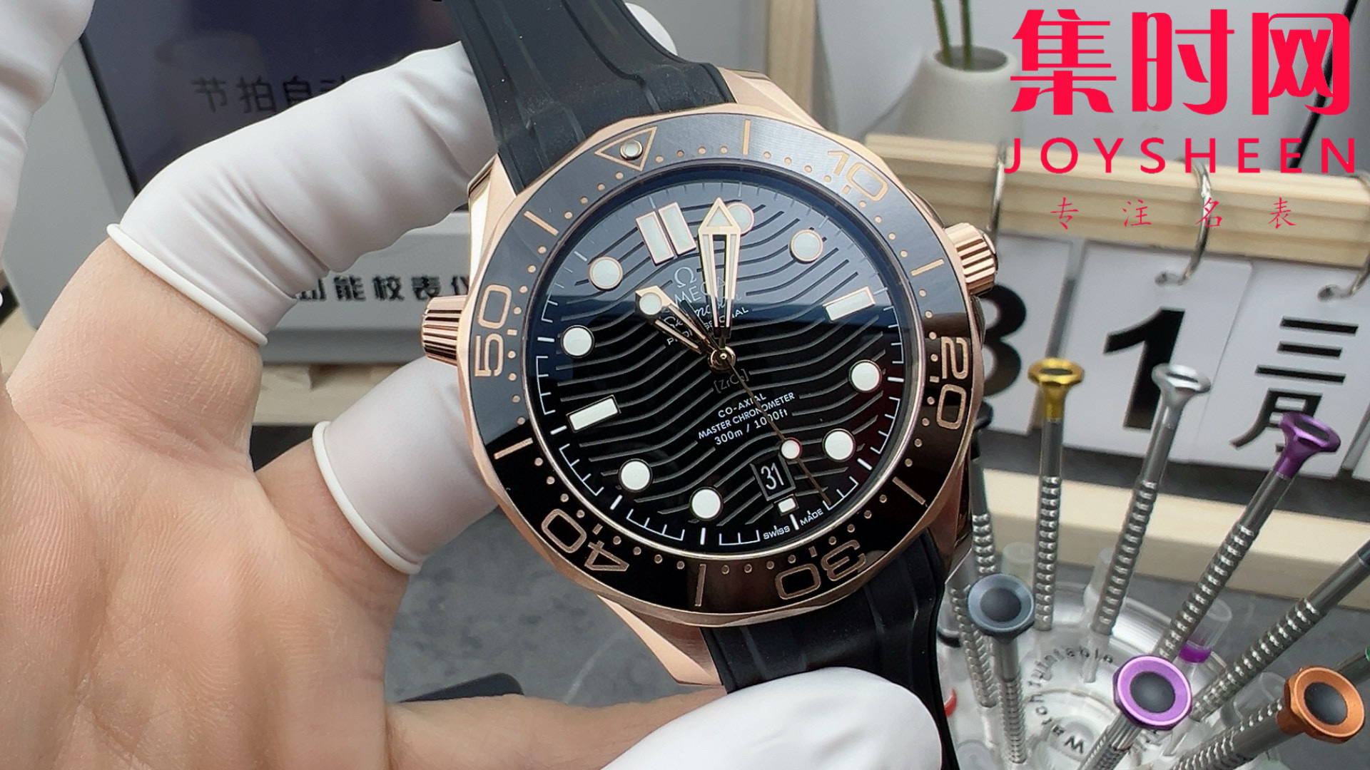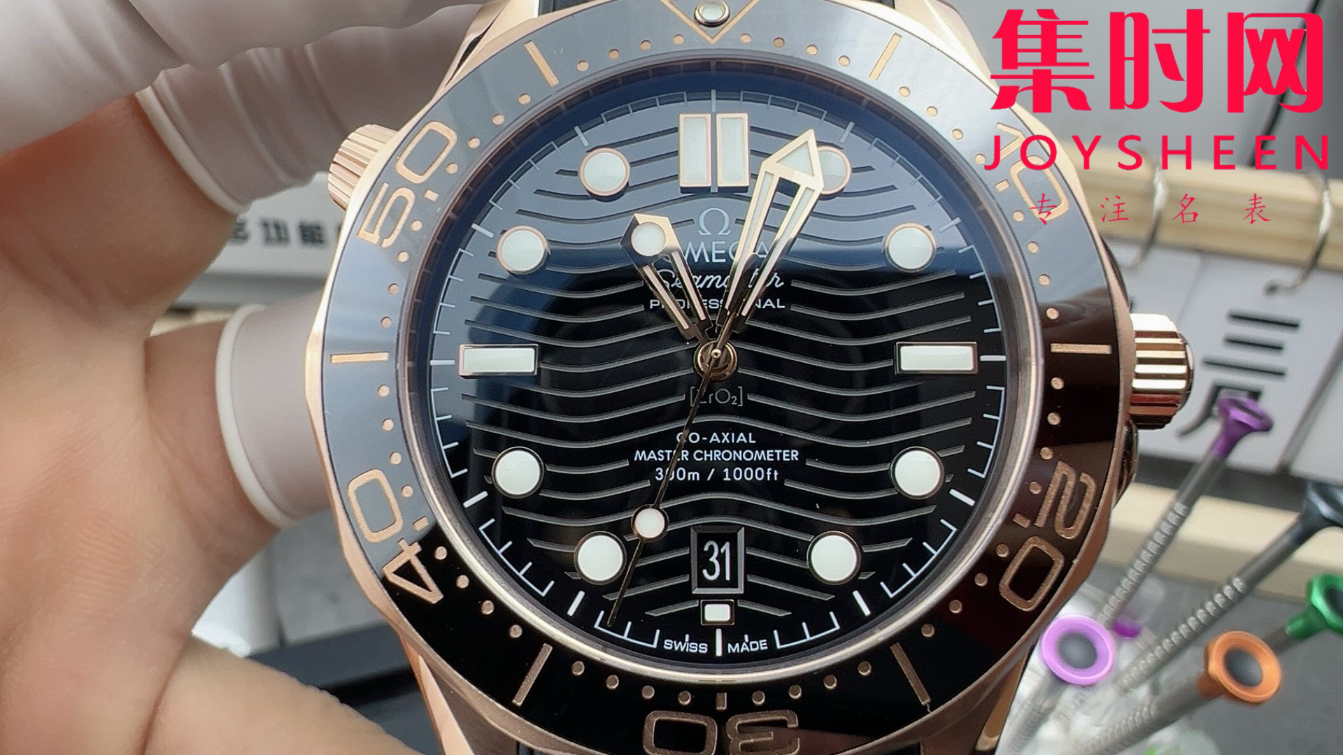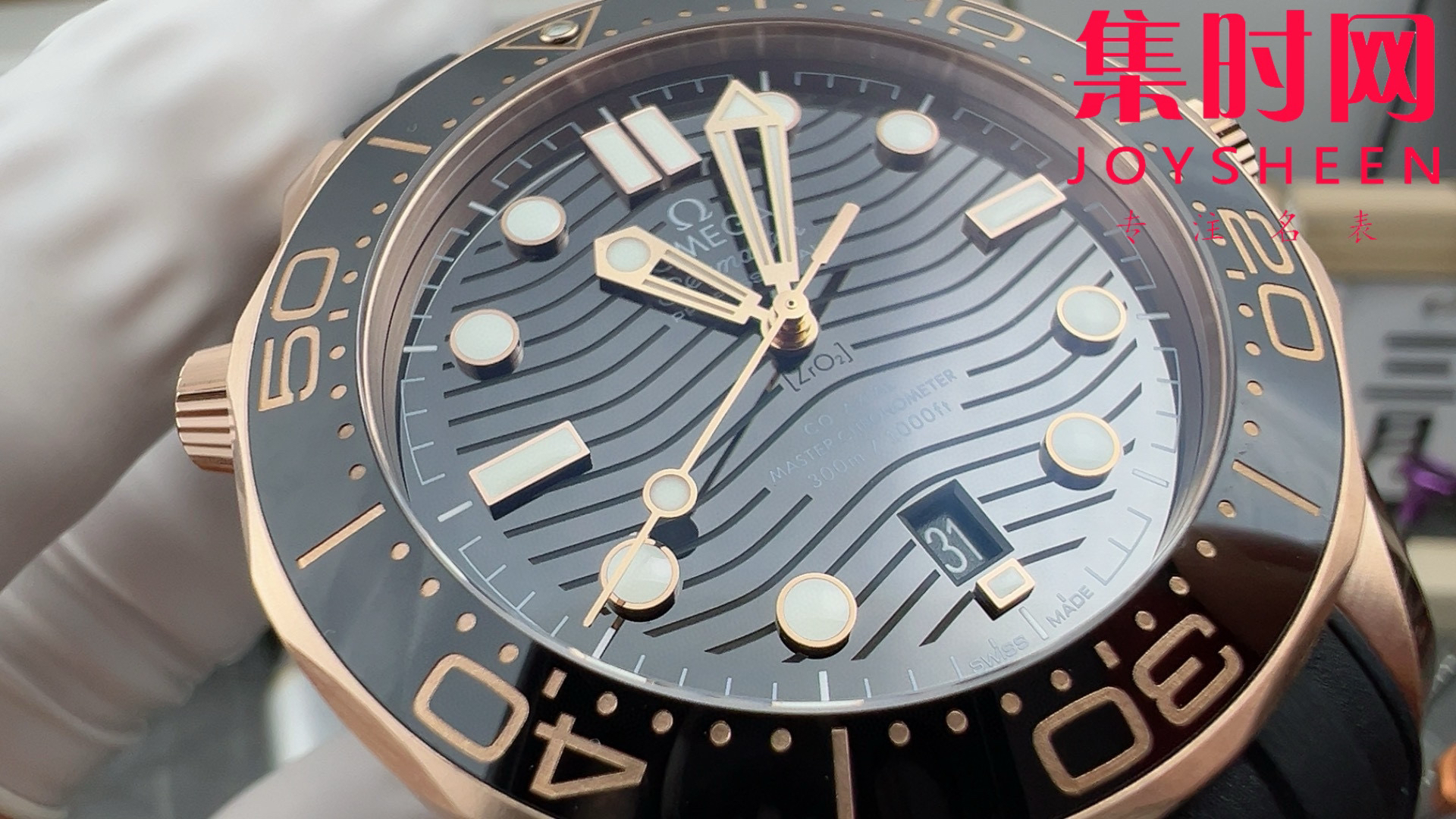 欧米茄VS海马300米系列 原装开模 全玫金黑海马