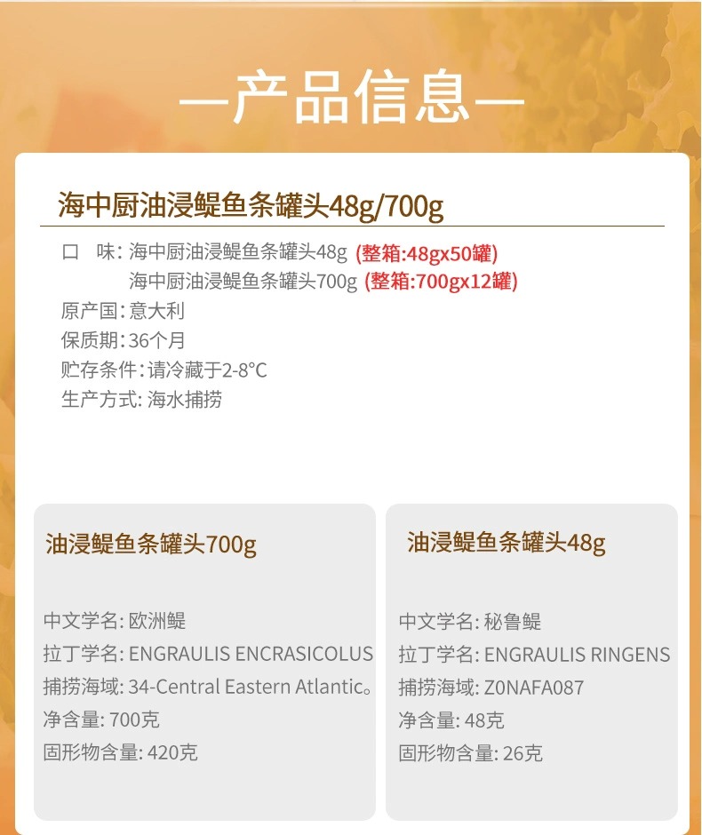 【中欧班列精选2盒】意大利原装进口海中厨鳀鱼条罐头油浸味 48g/盒SHRW