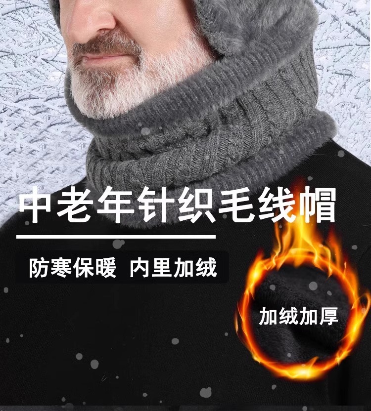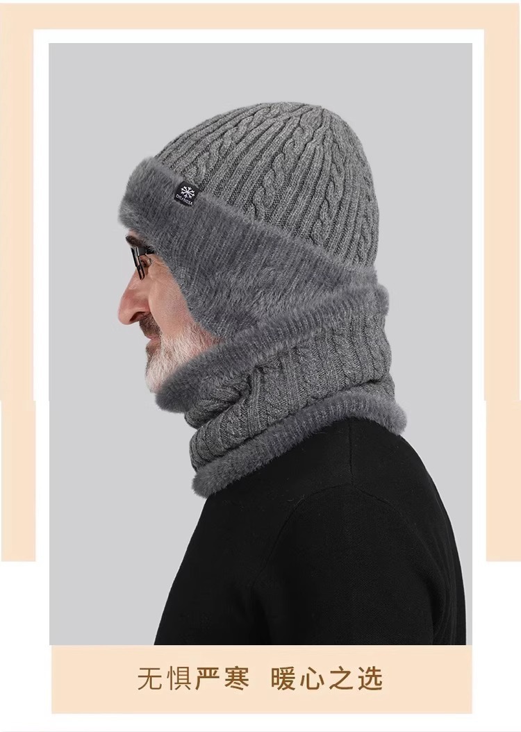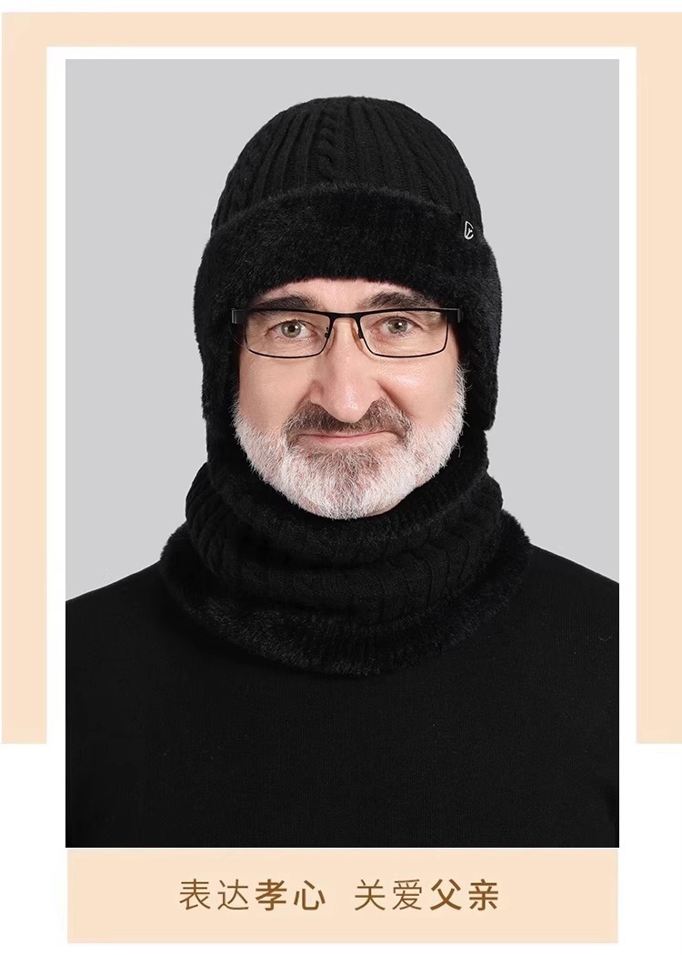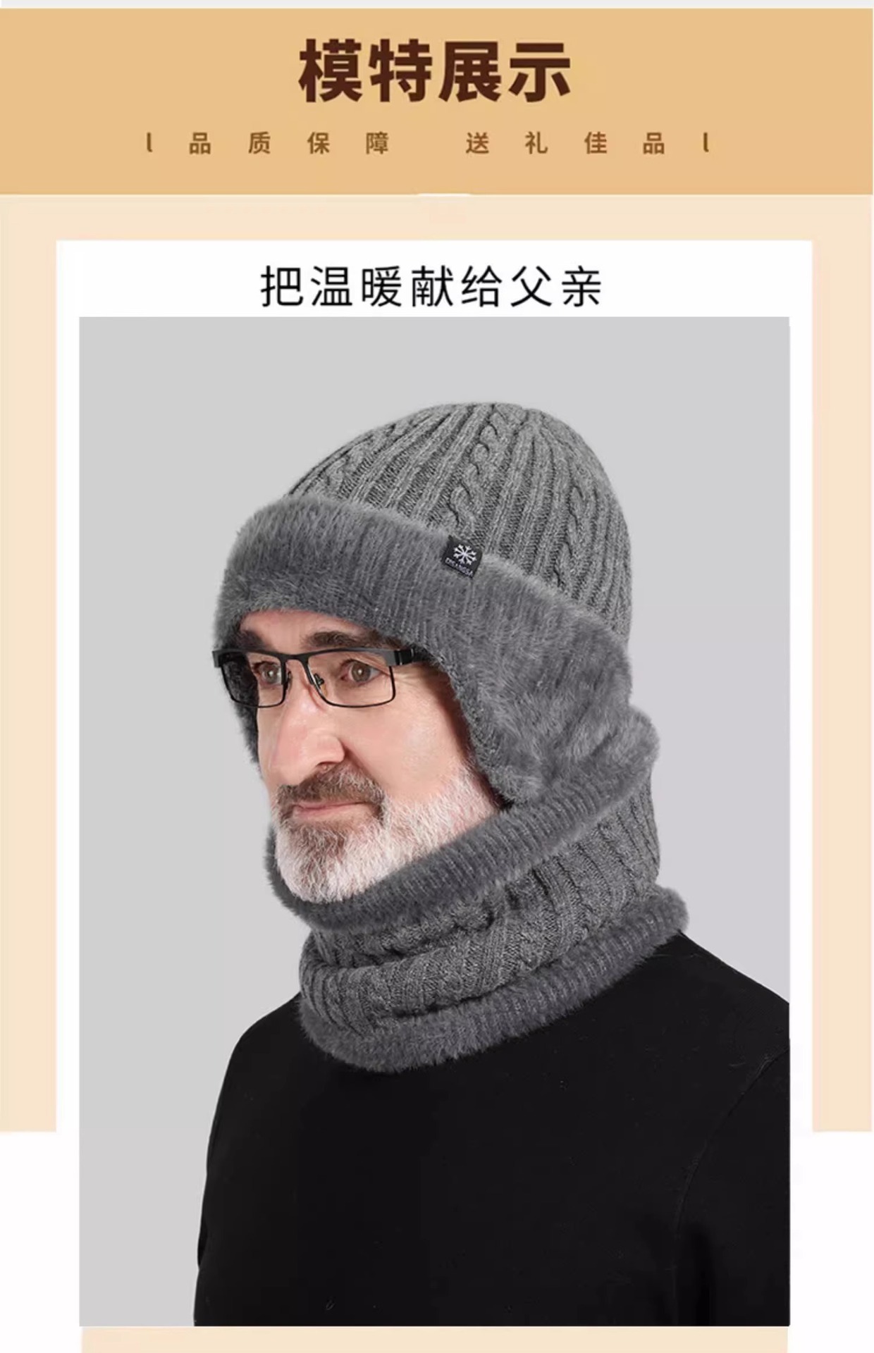 秋冬骑行保暖护耳护脖男加厚毛线针织帽子套头围巾帽子两件套