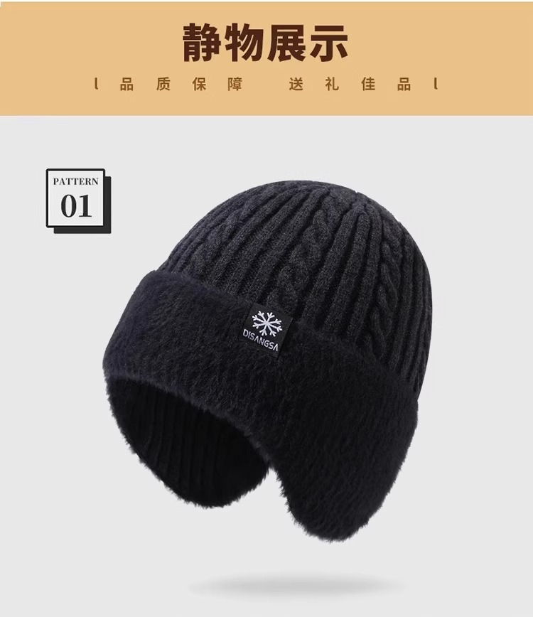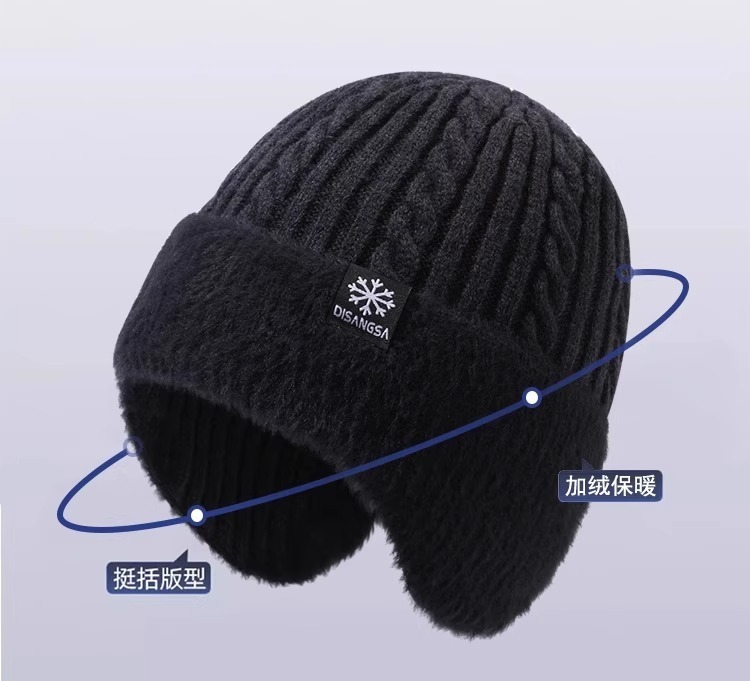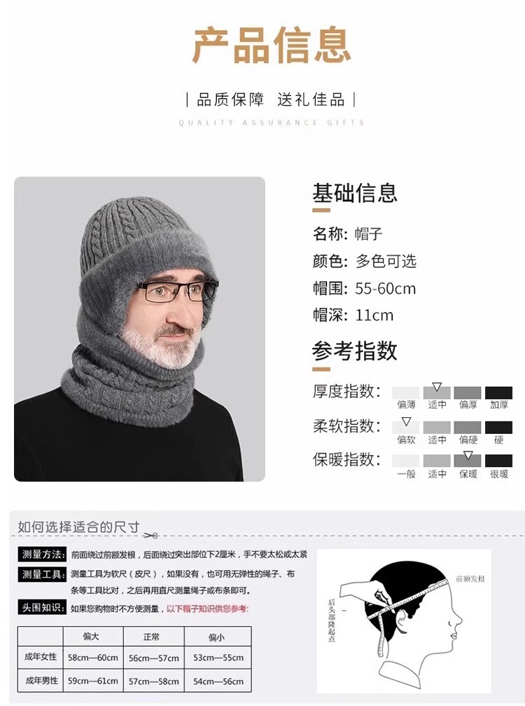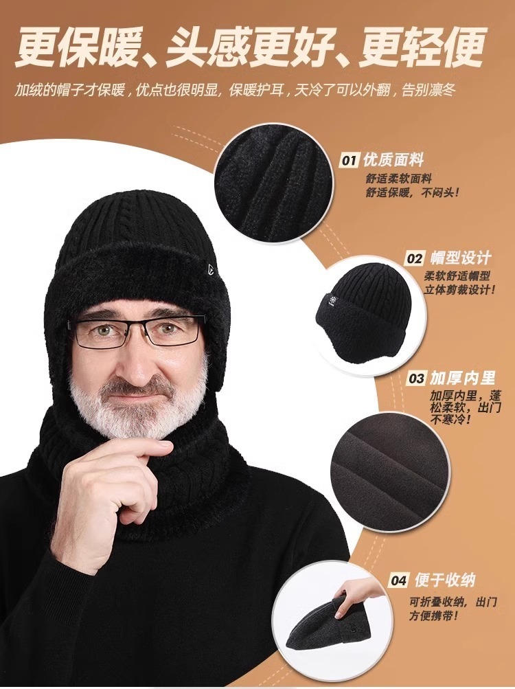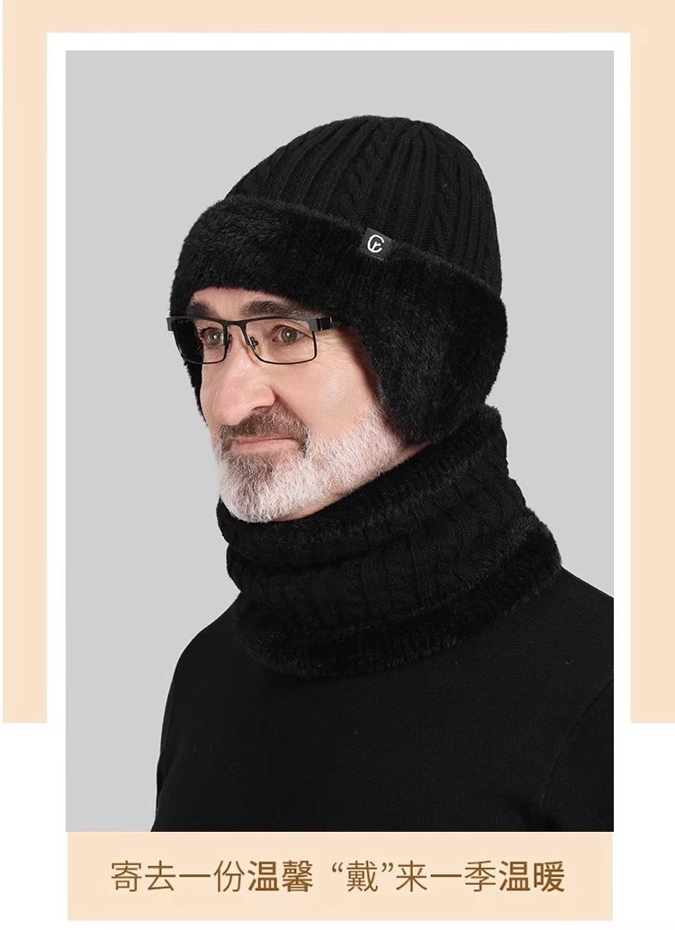 秋冬骑行保暖护耳护脖男加厚毛线针织帽子套头围巾帽子两件套