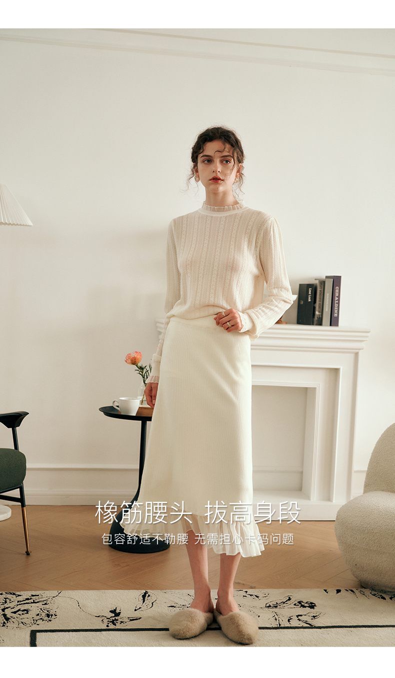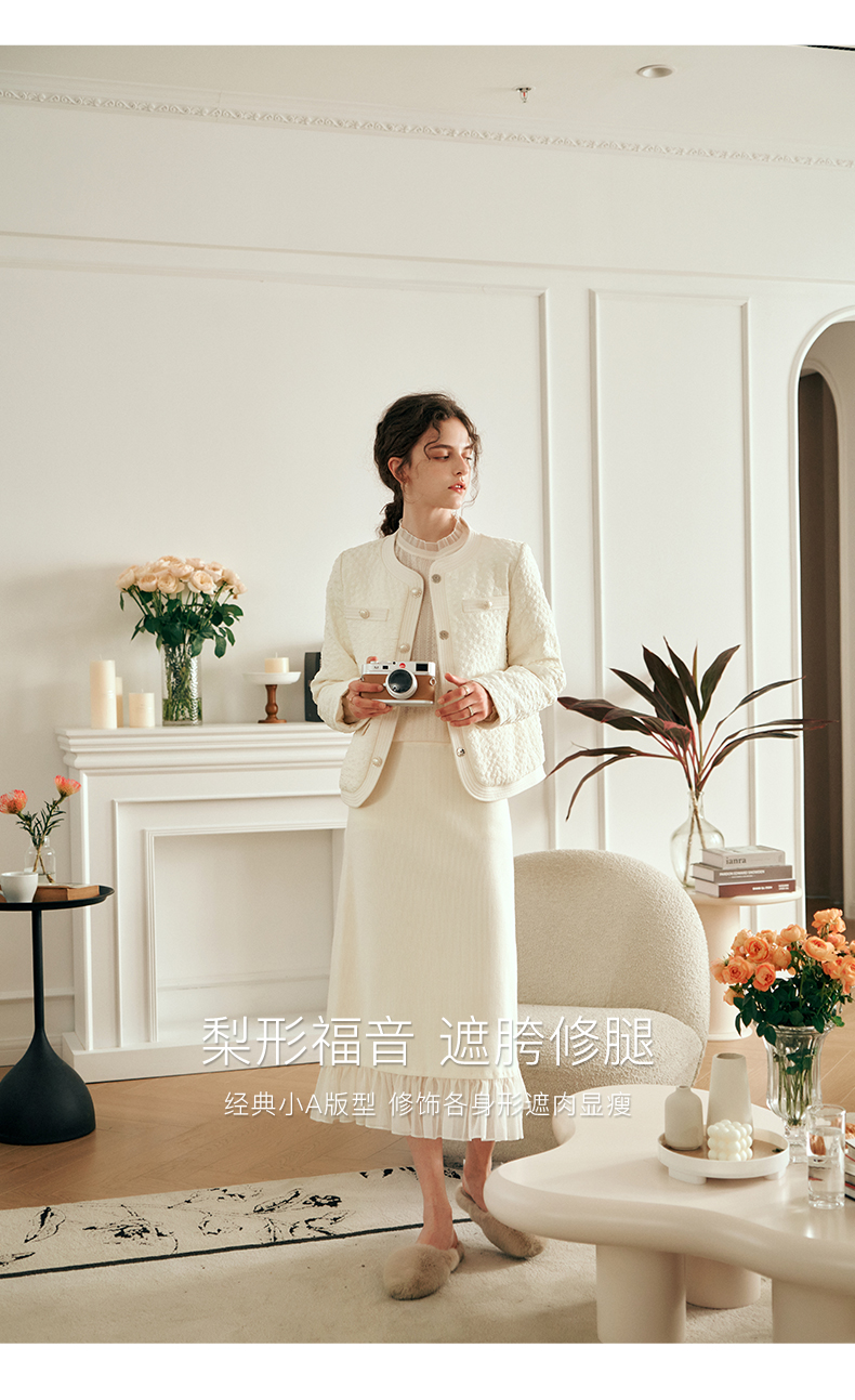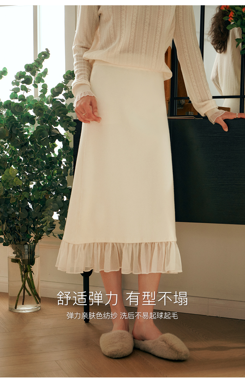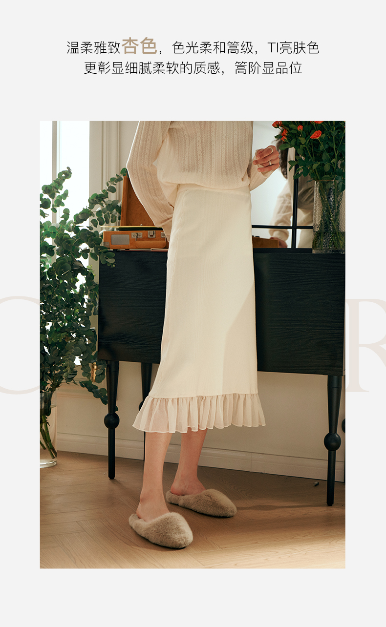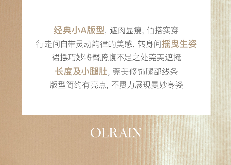 OLrain欧芮儿法式杏色半身裙女秋冬2023年新款气质百搭显瘦中长裙