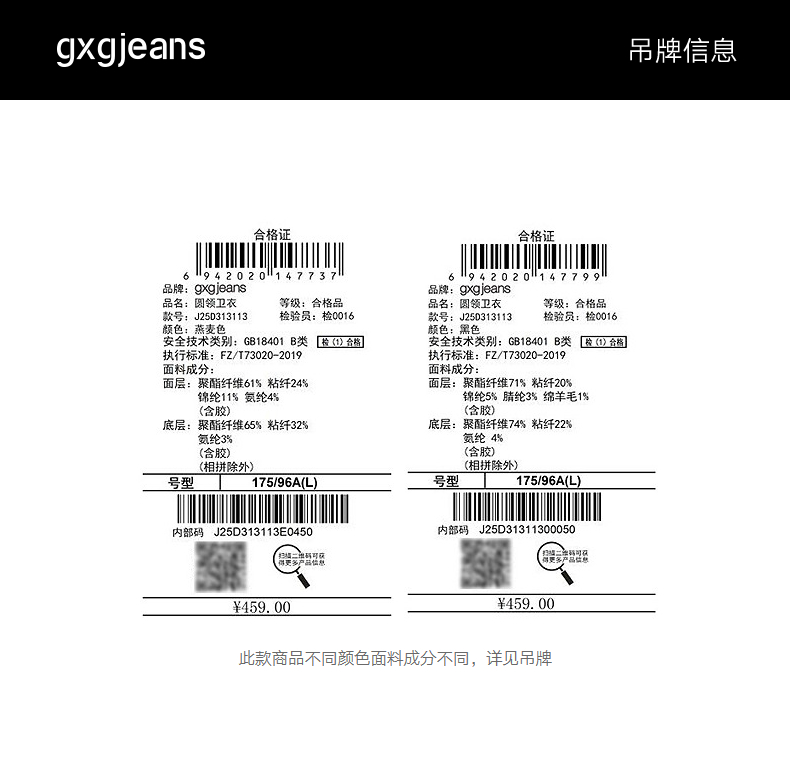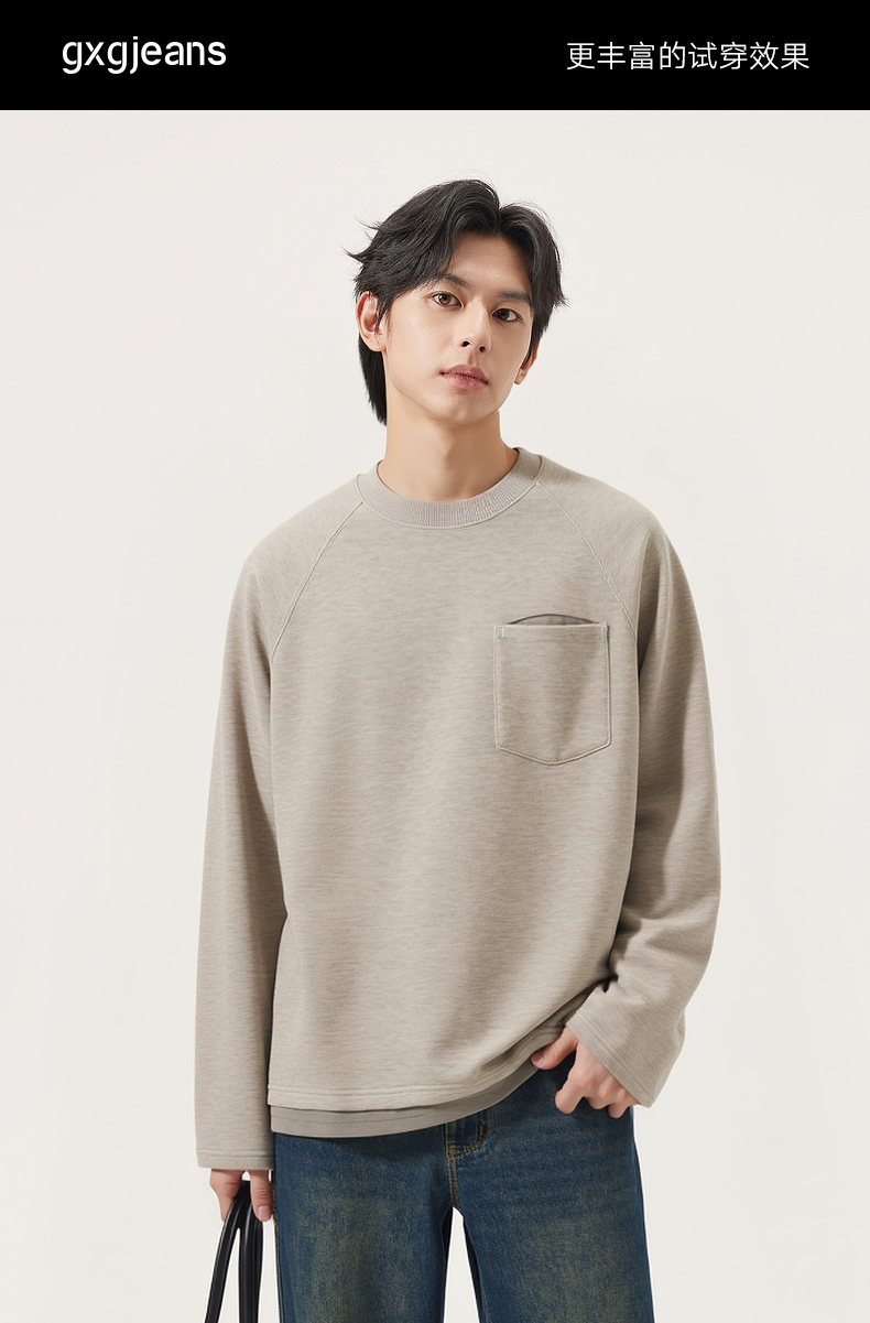 gxg.jeans男装 多色假两件潮流时尚宽松卫衣男生上衣 25年秋热卖