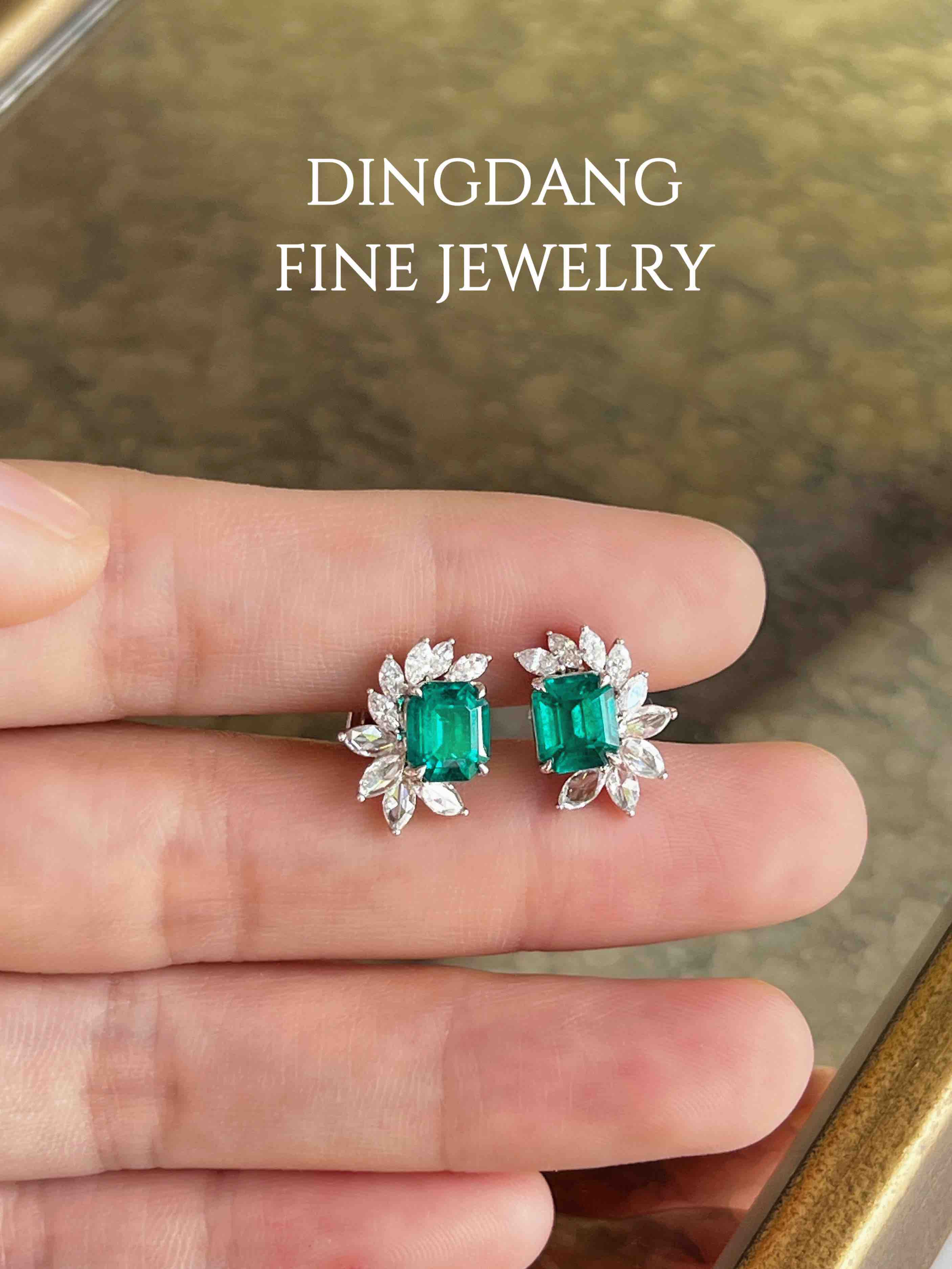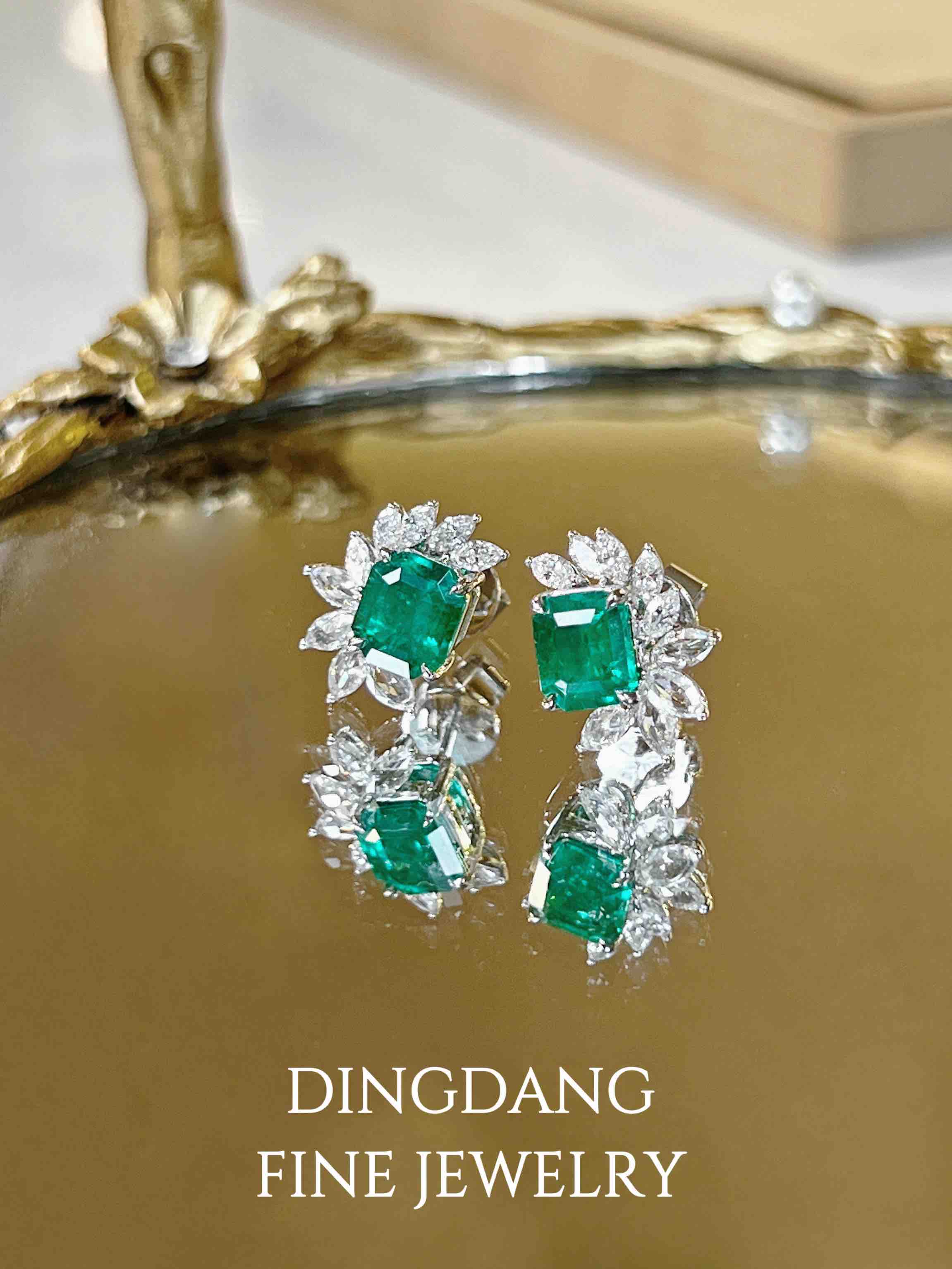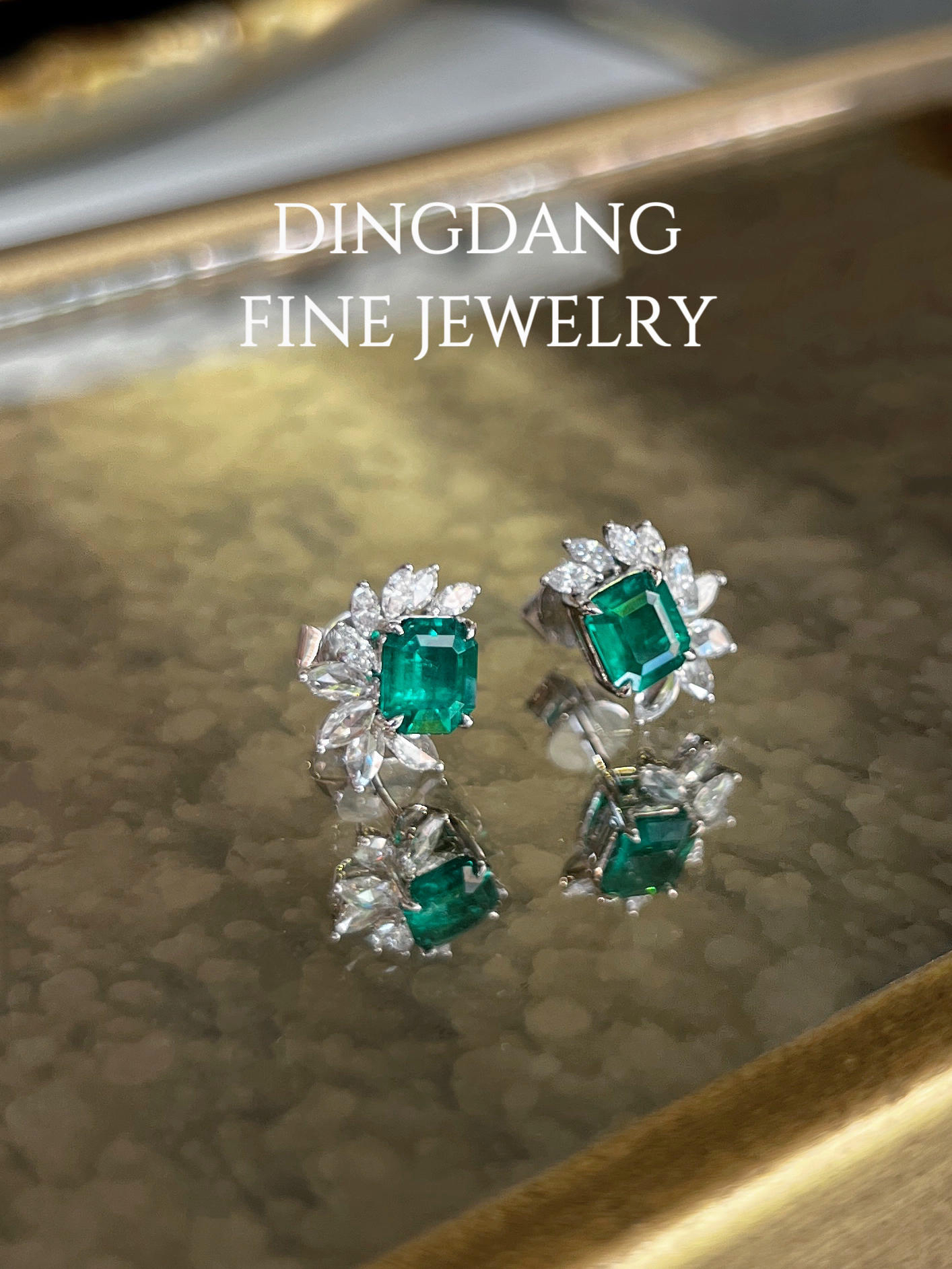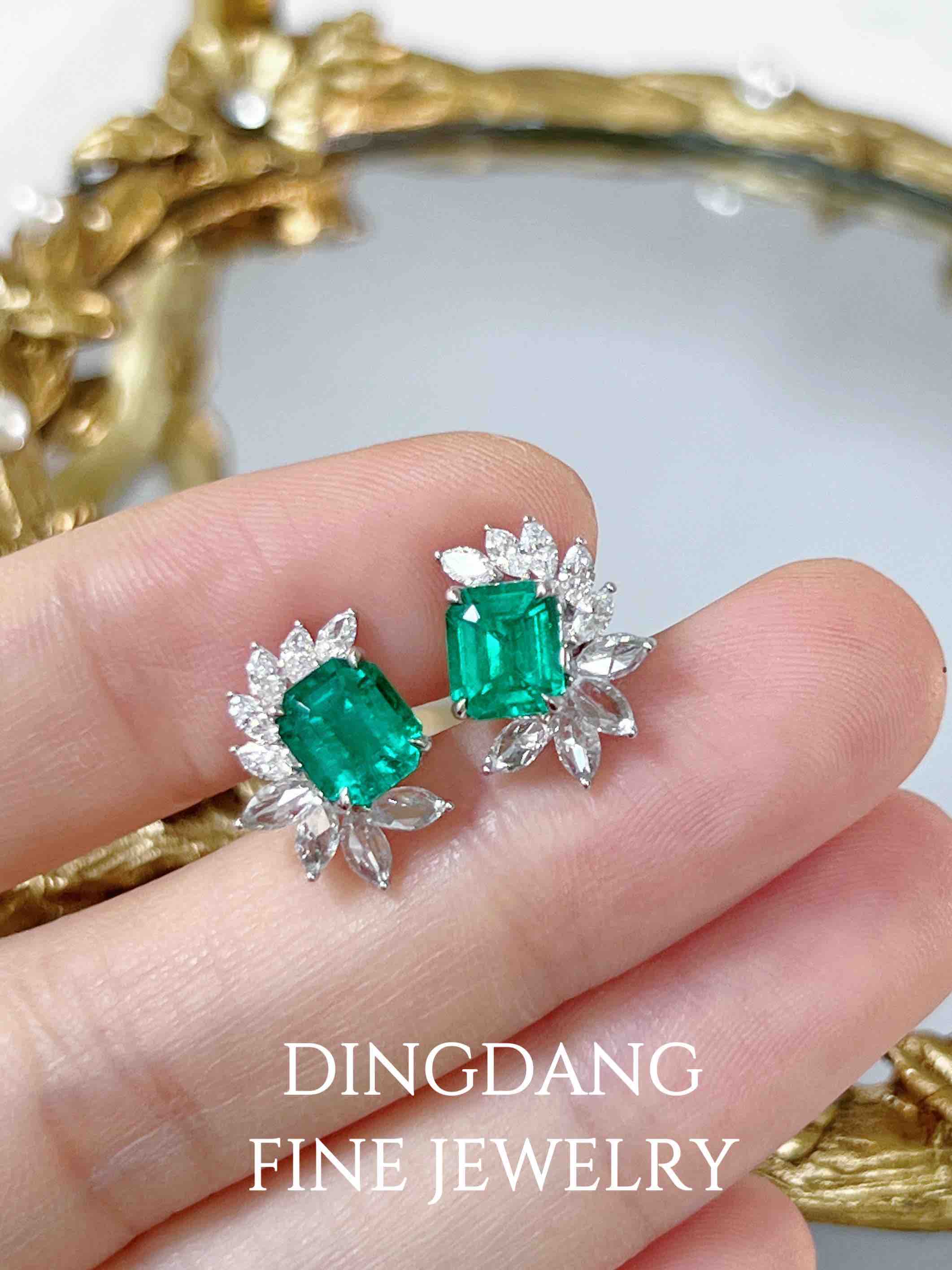 祖母绿 1&0.96 哥伦比亚 🇨🇴祖母绿耳钉,宝石完美无瑕搭配天然钻石层层递出,魅力如花绽开花