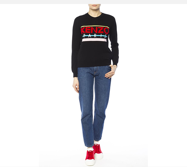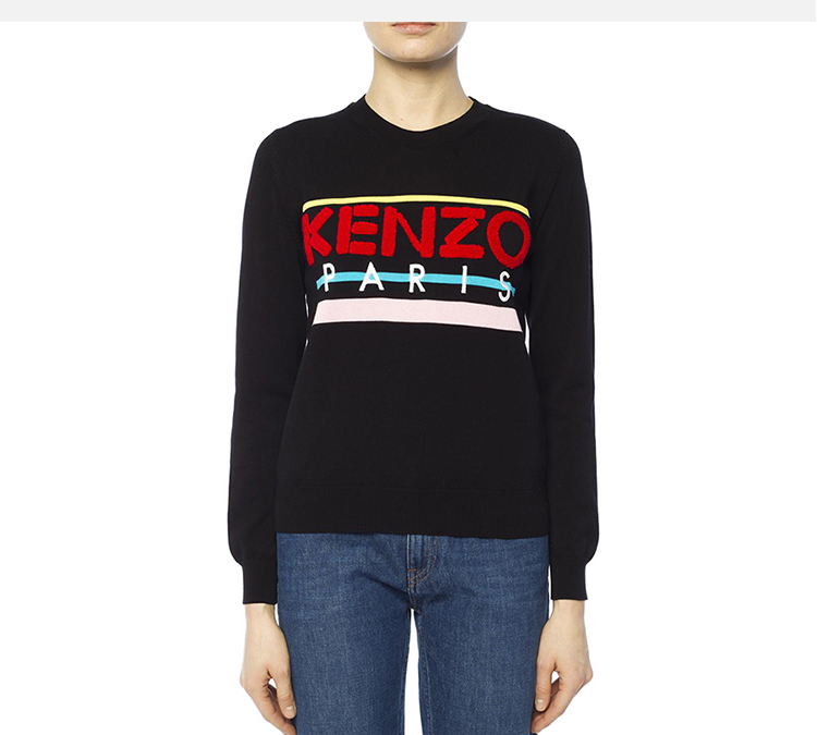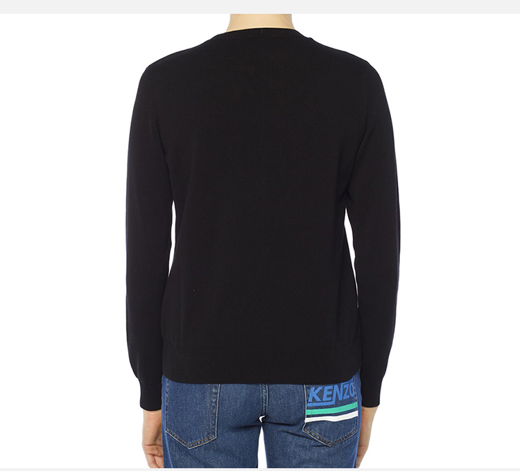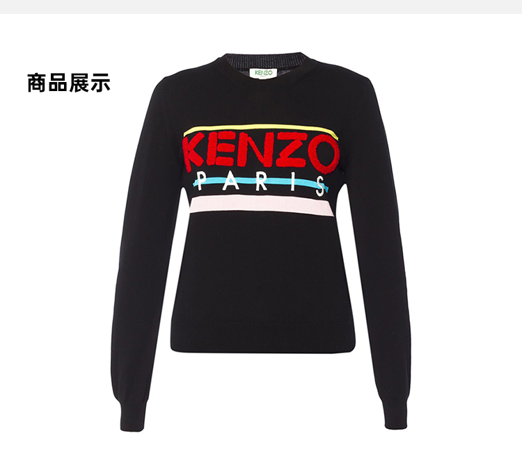 KENZO 高田贤三 女士棉质字母刺绣徽标圆领长袖针织衫 黑色 F852 TO490 808 99