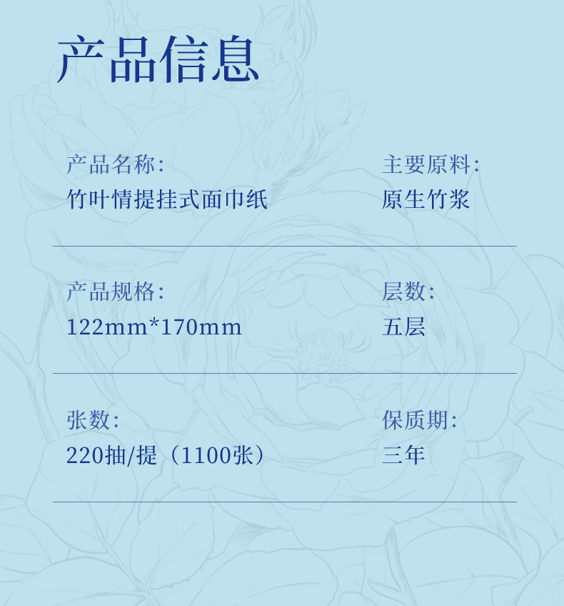 「两提装!五层加厚」蓝漂玫瑰图案悬挂式本色抽纸纸巾居家日用五层实惠装大尺寸面巾纸