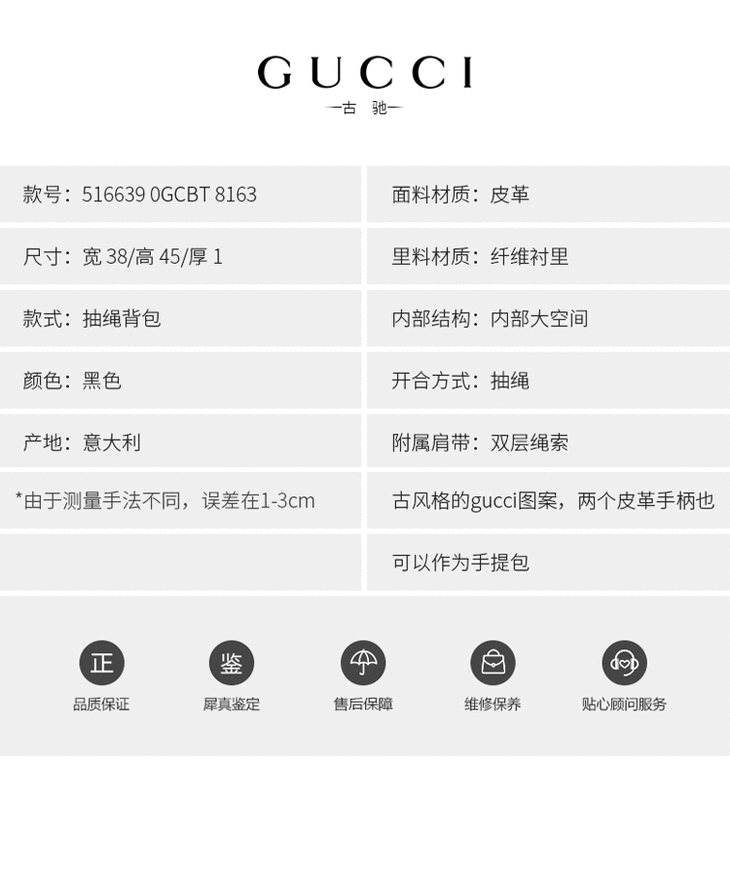 GUCCI 古驰 男包牛皮GG印花手提双肩两用抽绳购物袋 516639 0GCBT 8163