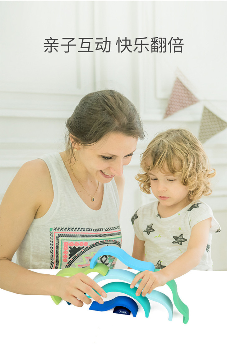 【彩虹式圆滑隧道积木 互动式实木套装】 早教儿童益智小号彩虹实木积木隧道玩具