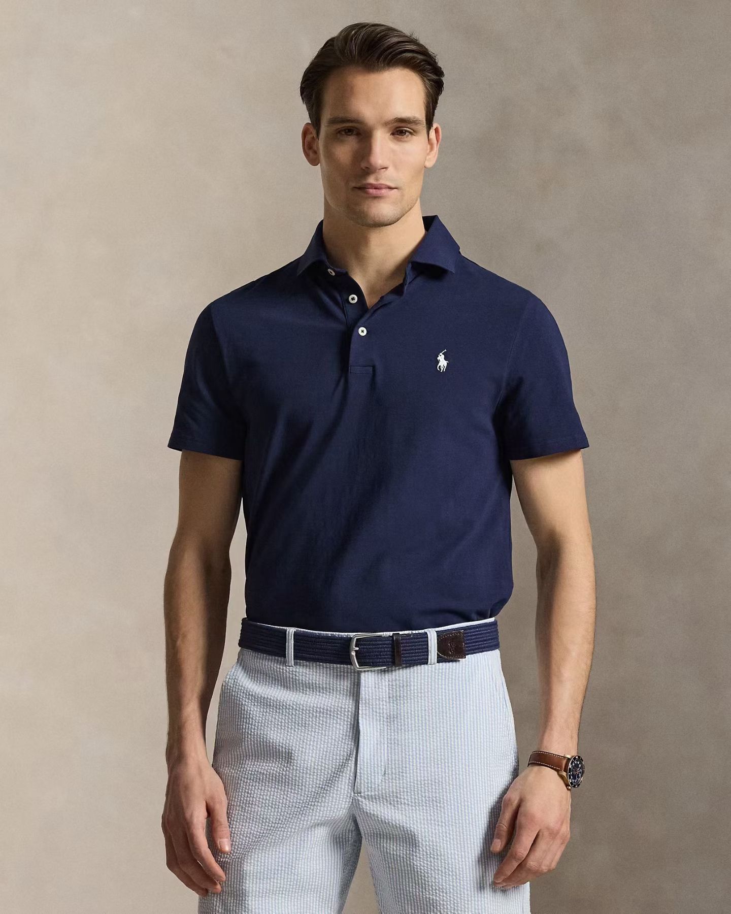马球高端运动线RLX排汗吸快湿干高弹力短袖翻领POLO衫。客供东丽面料+科技感!运动勤通两相宜,速微干弹解锁夏日清爽!夏日动运怕闷热黏腻? RLX 这款排汗吸快湿干短袖 POLO 衫,让你清爽一天!衣领袖口弹力罗纹增强质感,简约 ,计设兼顾闲休与正式感,纯色基调搭百不挑人,单穿清利爽落,叠穿更层显次感,轻松适配种多场景。